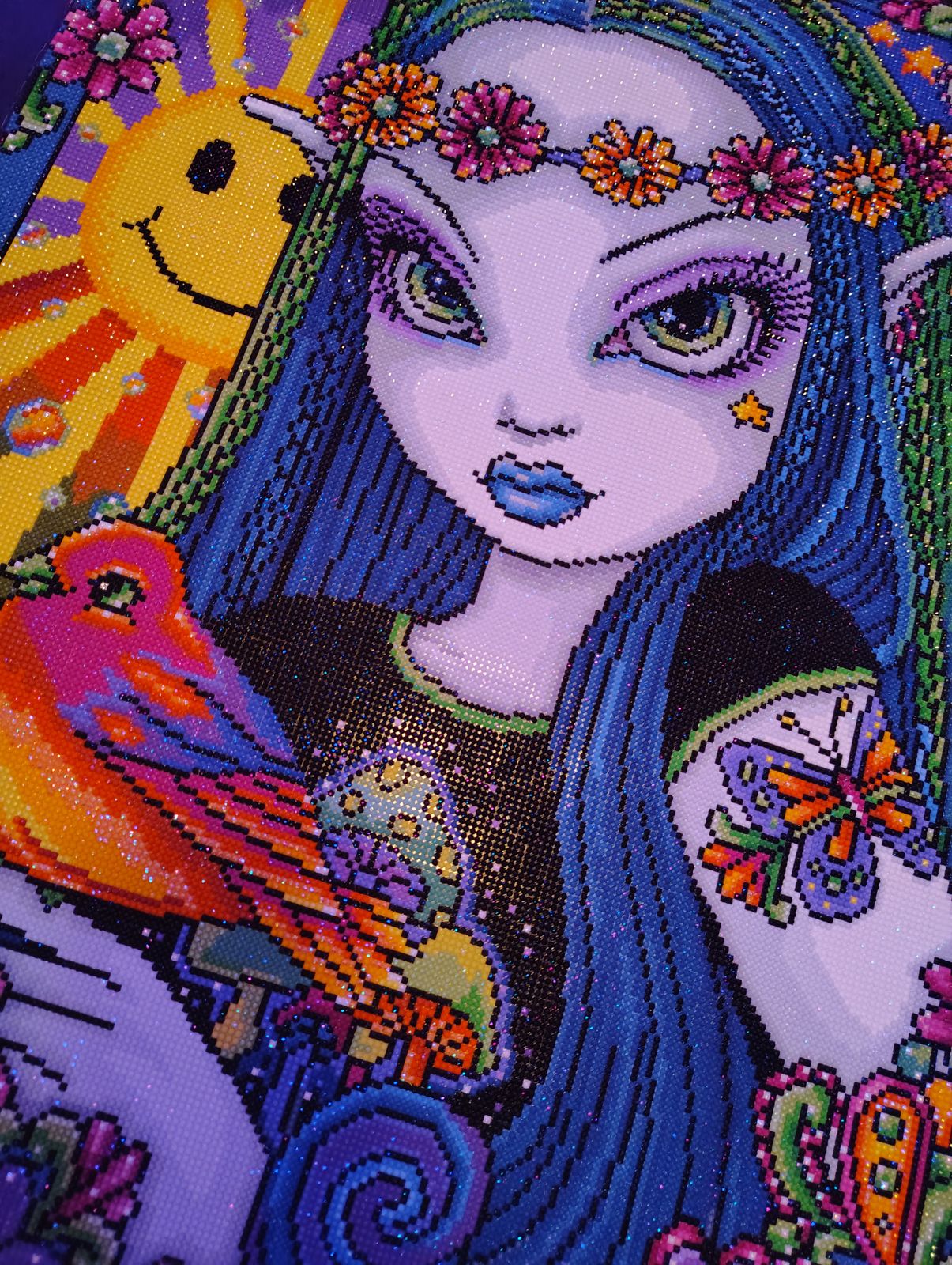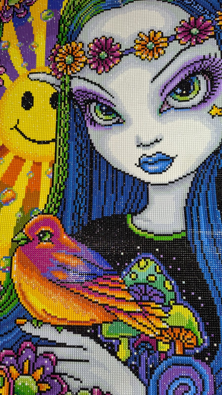 This kit was so much fun to work on! So many bright and wonderful colors. Everywhere you placed a drill you had a fun portion to diamond paint. My favorite part was the special drills and the bird. And her flower crown. You won't be disappointed in buying this kit.