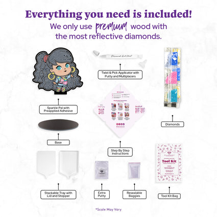 Diamond Painting Sparkle Pals™ - Handy 5.8" x 4.4" (14.7cm x 11.3 cm) / Round with 7 Colors including 3 Fairy Dust Diamonds / 1,224