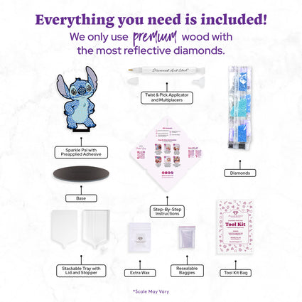 Diamond Painting Frameables™ - Cuddly Stitch™ 6" x 6" (15cm x 15cm) / Round with 13 Colors including 4 Iridescent Diamonds / 1,907