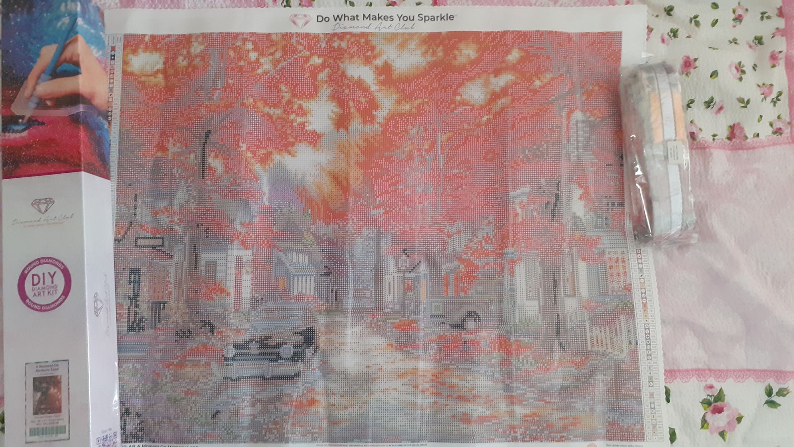 I finally started this absolutely stunning canvas by Chuck Pinson, my third one by him. It is loaded with confetti which I LOVE! It is really starting to come to life! Another stellar canvas by Diamond Art Club!