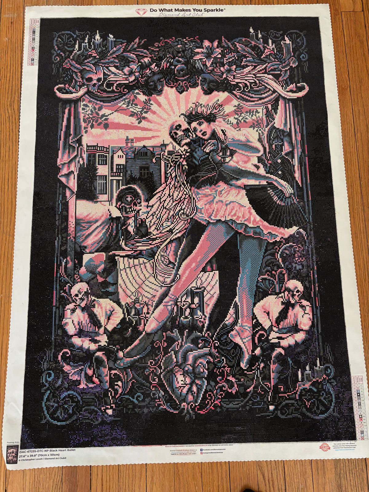 I loved working on this piece, especially with the rays of light and tights of the ballerina. The AB and fairy dust diamonds are soo pretty! Can't wait to hang this up in my room.