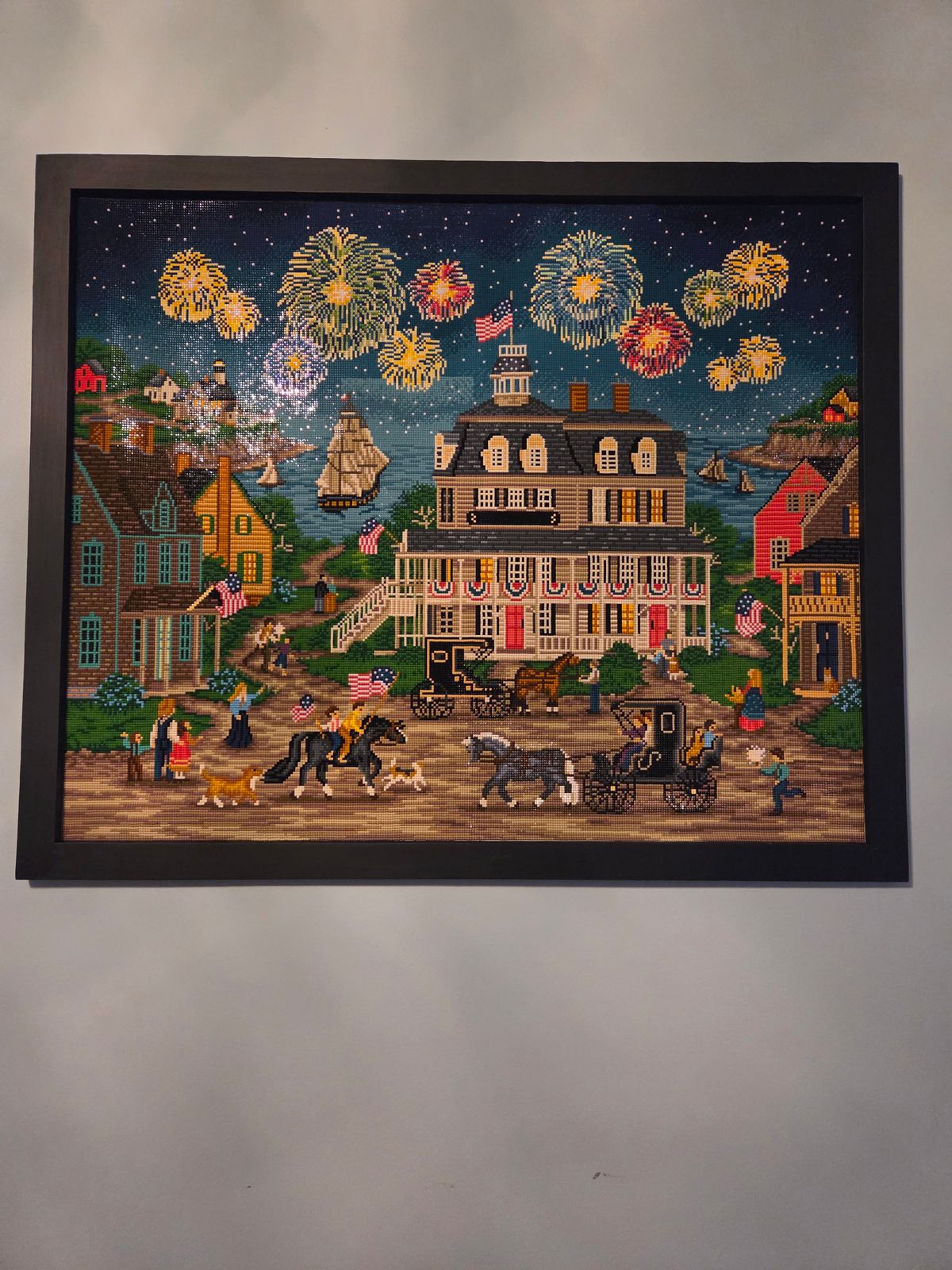 This painting has been on display in my home since June of this year. A friend of mine was admiring it and noticed so much detail in it that included some of the lights in the houses being on and some being off. I told her that this is usual in DAC paintings. The paintings are so vibrant and colorful and have great detail! I just love Diamond Art Club for the great overall quality!