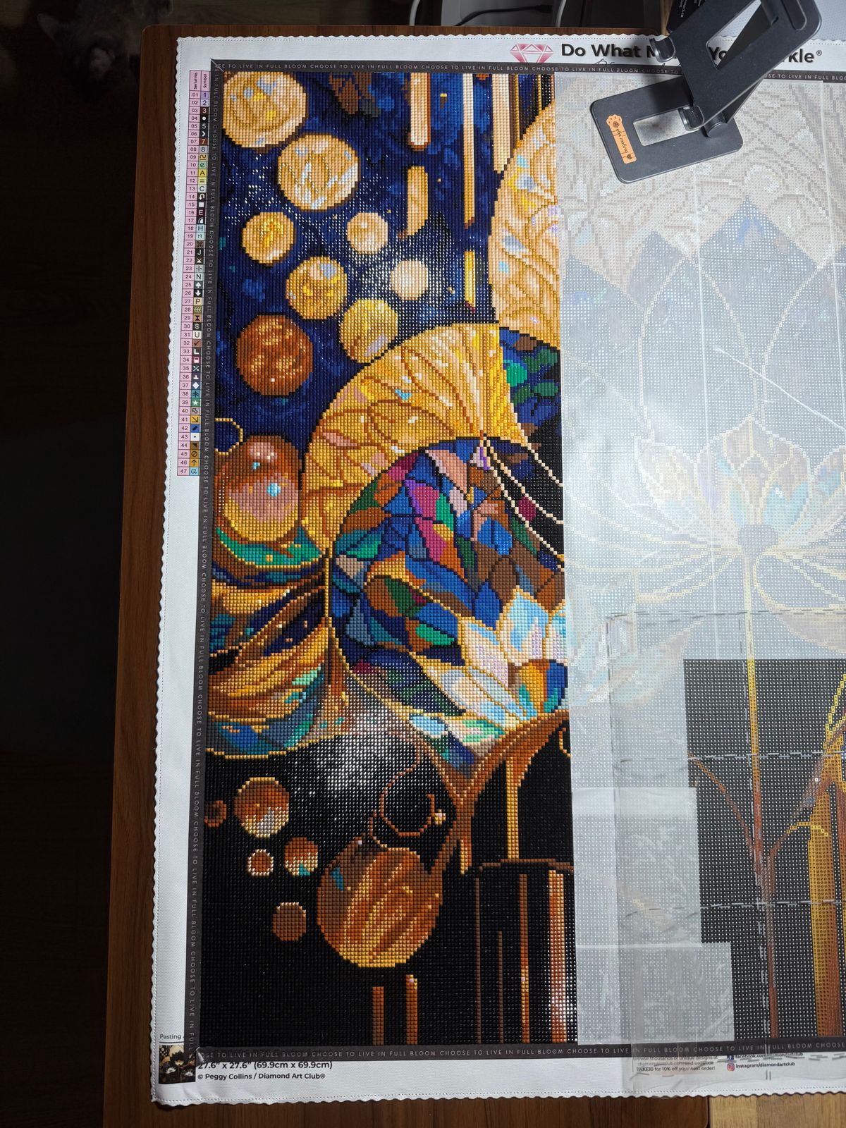 This is my first square drill painting. After a bit of a learning curve I am off and running. I’ve completed a single row of blocks but I’m loving how this is coming together