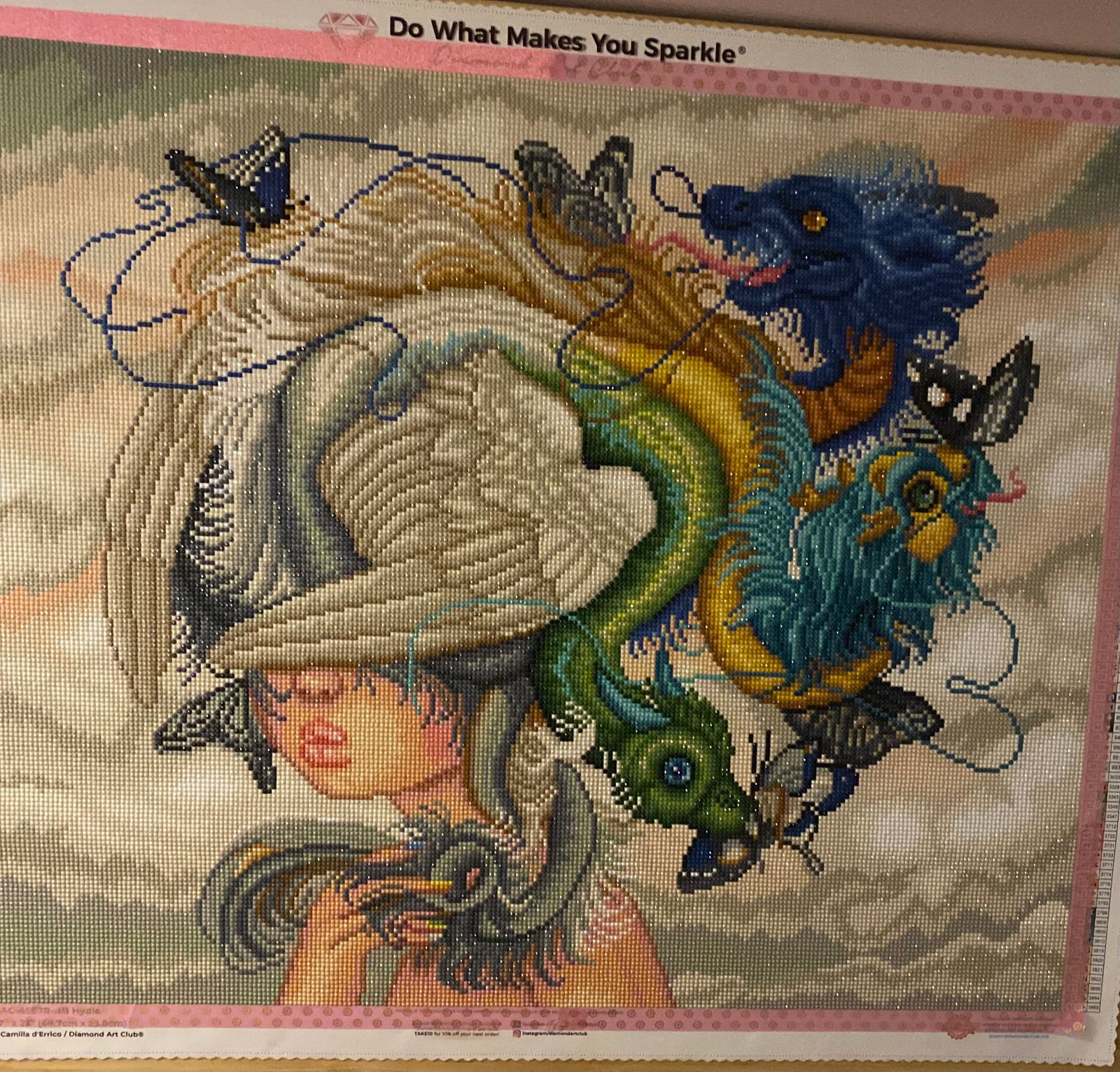 This is my first Diamond art painting and my first piece purchased with DAC (revived as a Christmas gift). The canvas is gorgeous and so well done. The colors are easy to see and it’s so fun to work on. I love Camilla d’Errico’s work and am so thrilled with this piece!