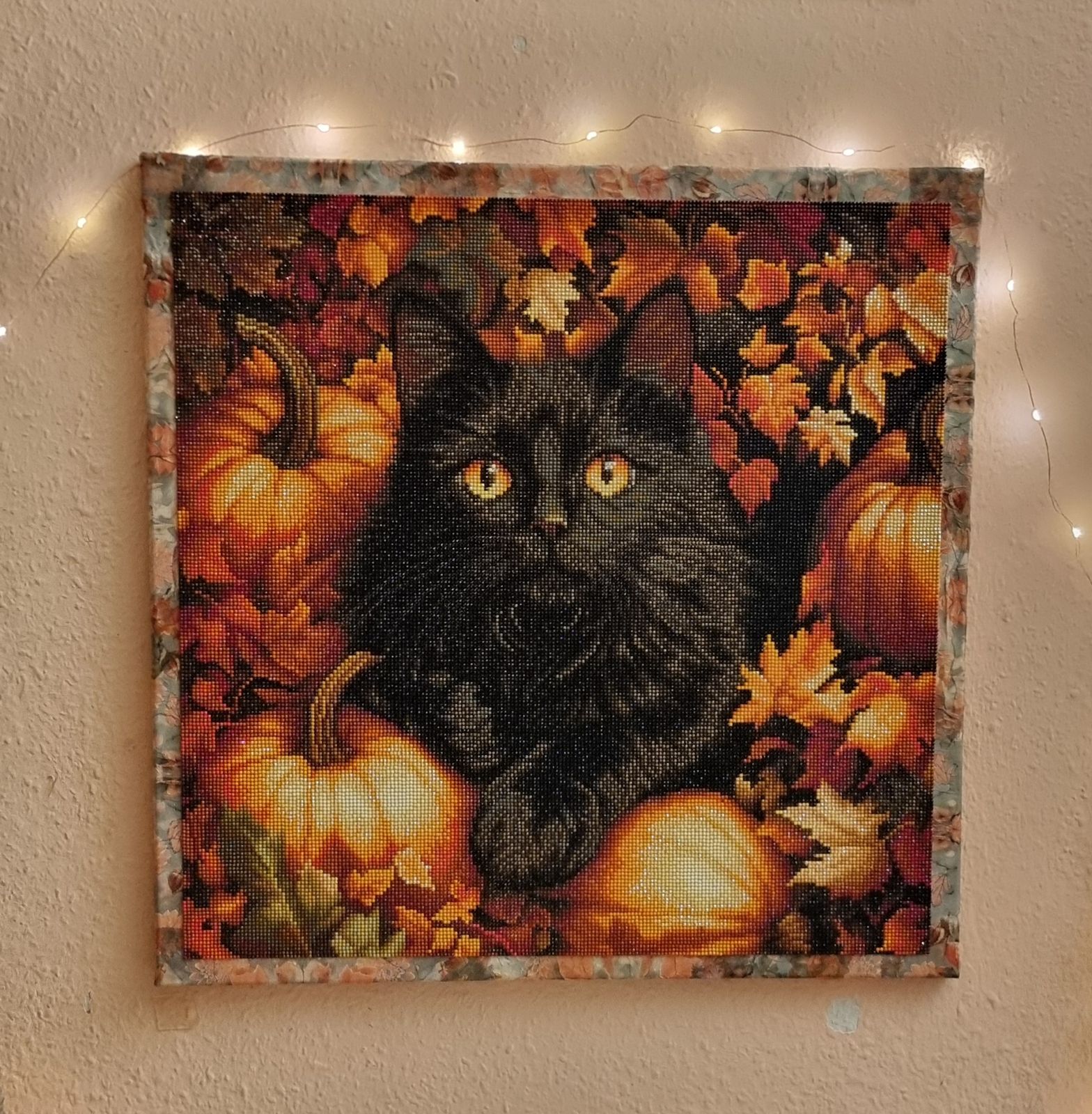 I rarely do round drills, but loved this one! I switched the whiskers drills from light to dark so that they are more discreet. Looks lovely on my wall!