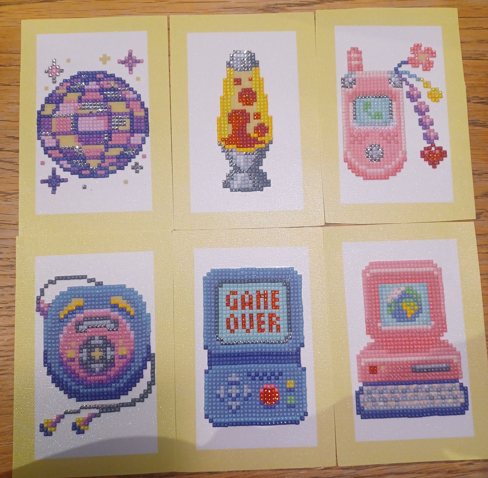 Throw it back to the raddest decade with some Mini Dazzles™ ready to shine! Craft 6 nostalgic designs—plus bonus stickers—full of pixel-perfect retro vibes!