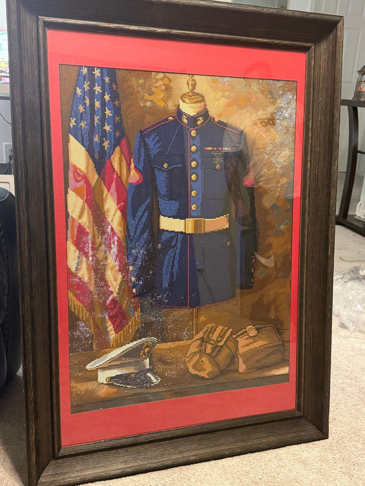 I loved this print, i made this for my son who is a veteran in the USMC. It was a little harder then my other ones, only because of all the blue. My eyes were going crossed. Lol and you will need a well lit area. But this one is held close to my heart. SemperFi