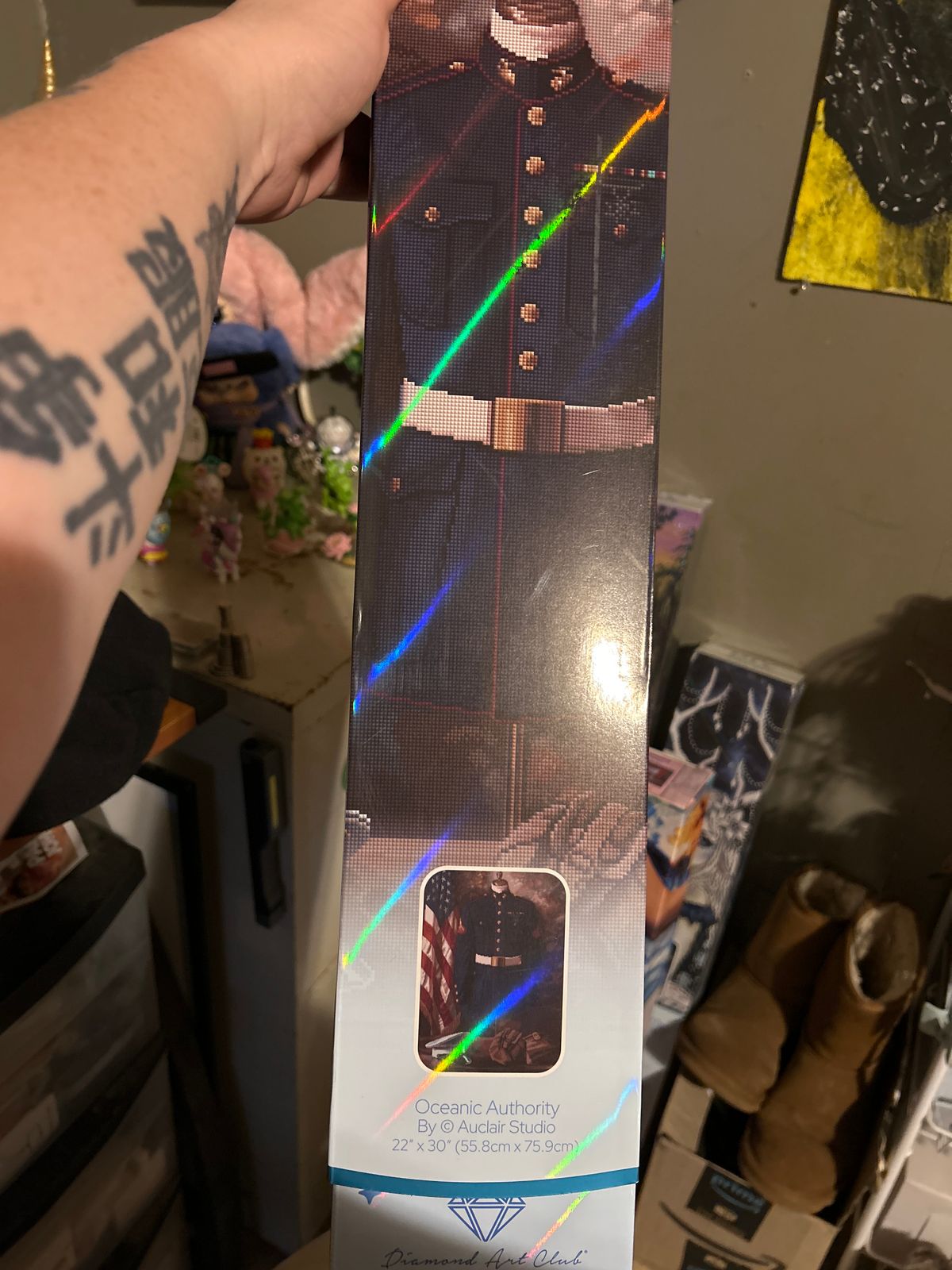 I bought this for my husband to honor his Marine Corp service. I was happily surprised at how beautiful it turned out. There is a lot of sparkle in this one and the fairy dust diamond colors are stunning. I will be having this framed this week.