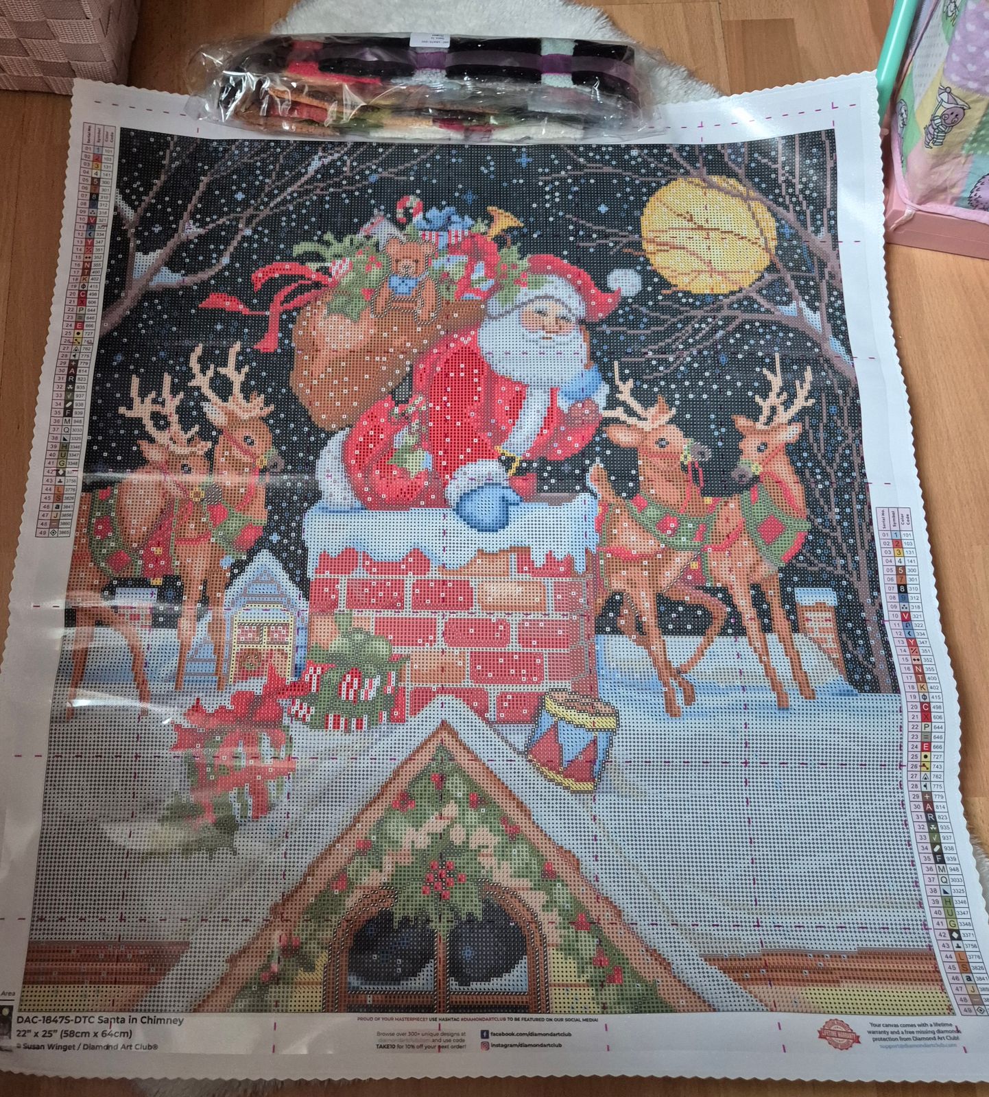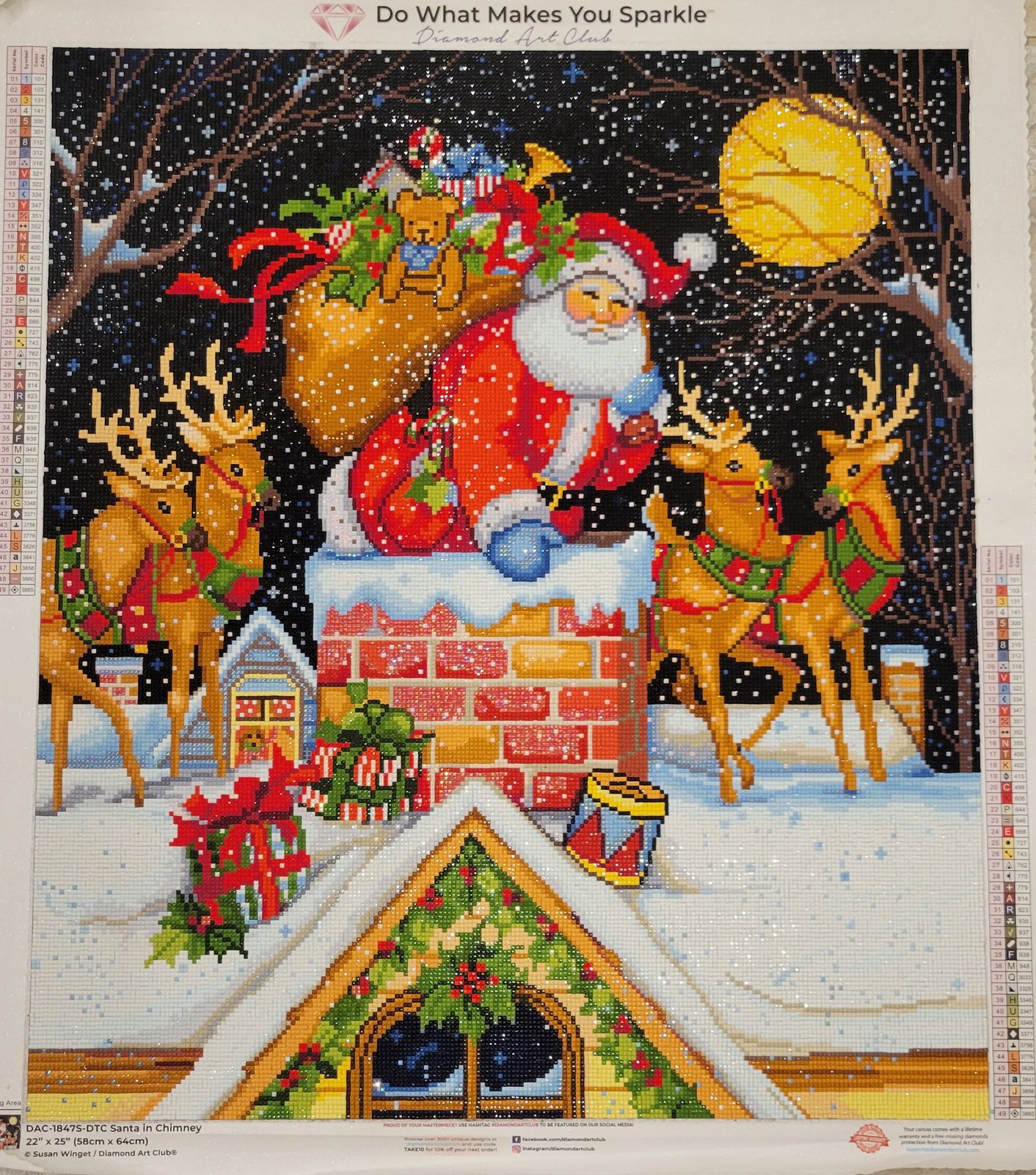 Diamond Painting Santa in Chimney 22" x 25″ (58cm x 64cm) / Square with 49 Colors including 4 ABs / 55,912