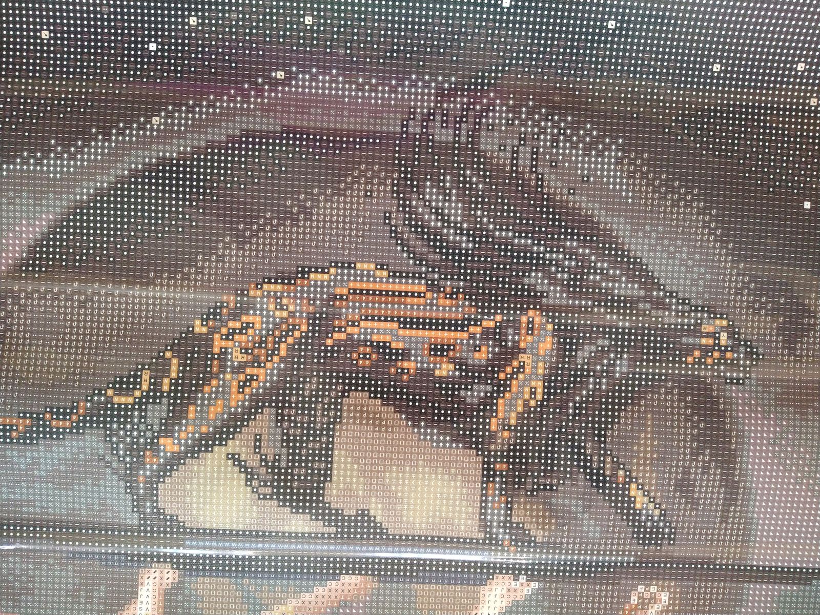 This was my first serious diamond art painting and when I saw this picture I just had to do it! It's definitely on the dark side, but that just seems to make it even more sparkly. The color blocking was nice in some areas and it gave me a lot of practice with the multi placer which I needed. This painting took me about 2 weeks to complete and I'm thrilled with how pretty it is!