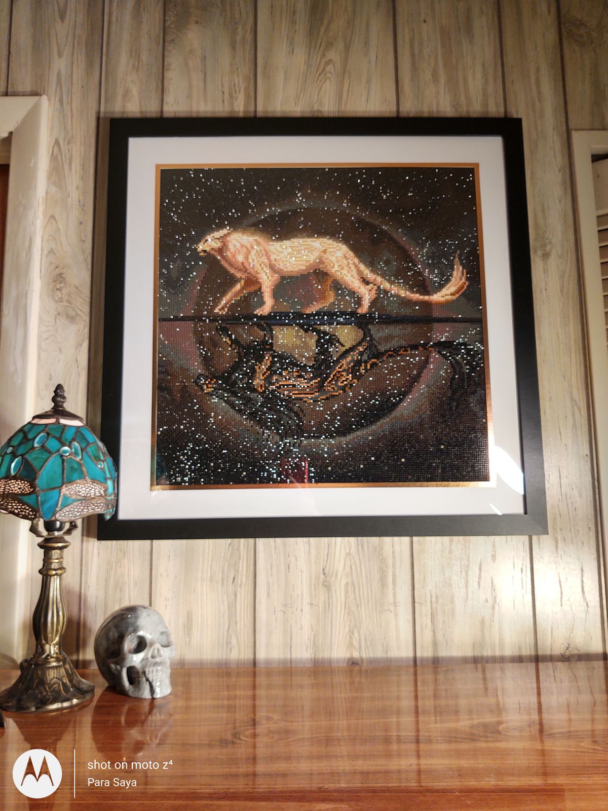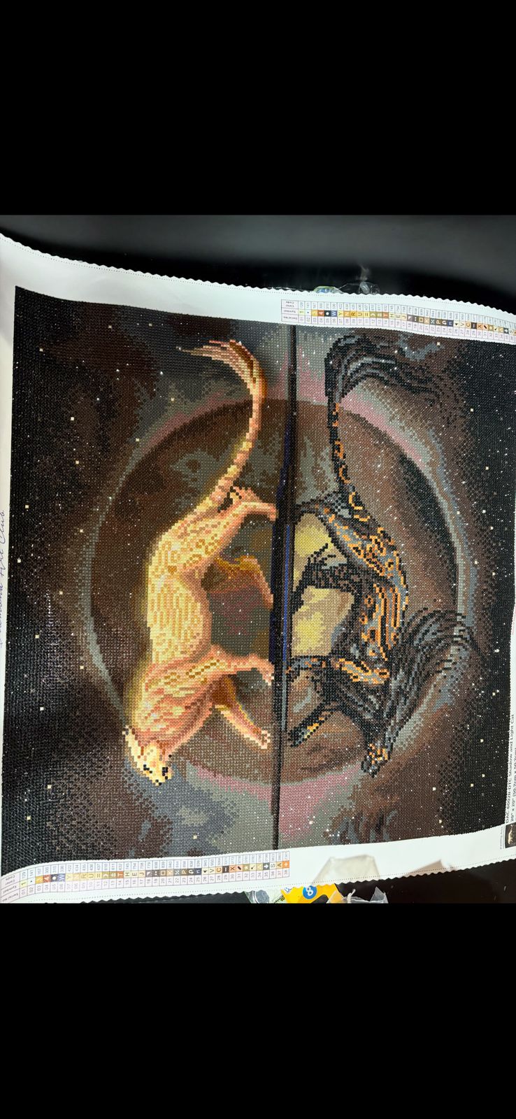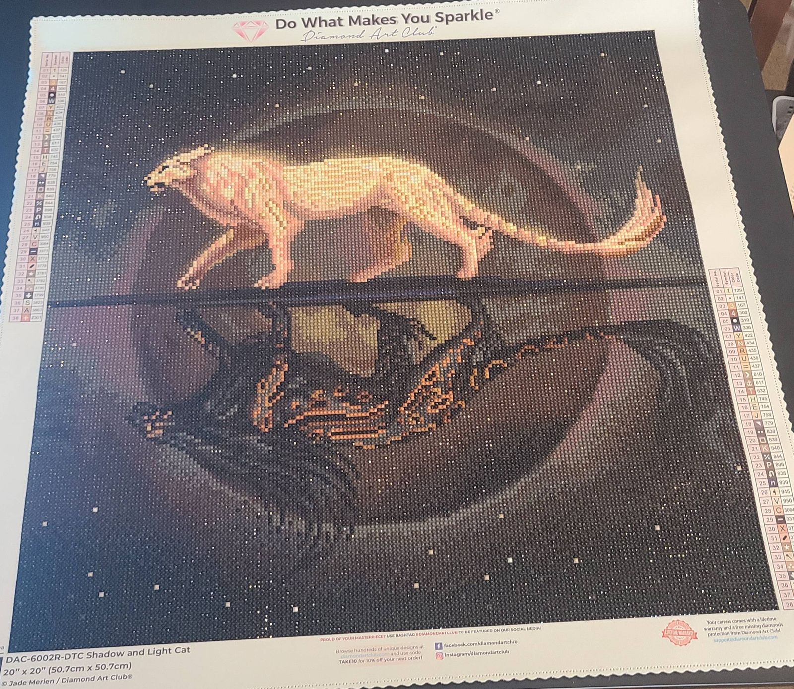 Its absolutely beautiful! I love that the black doesn't just swallow the shadow cat. Any other diamond painting would ruin the image!