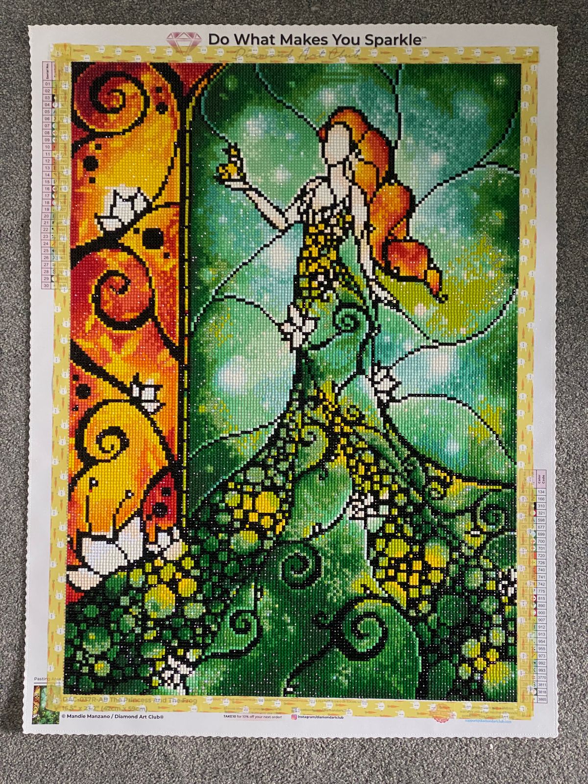I love Mandie Manzano’s artwork! This canvas was a joy to work on, so sparkly and vibrant. It worked up pretty easy and is just stunning.