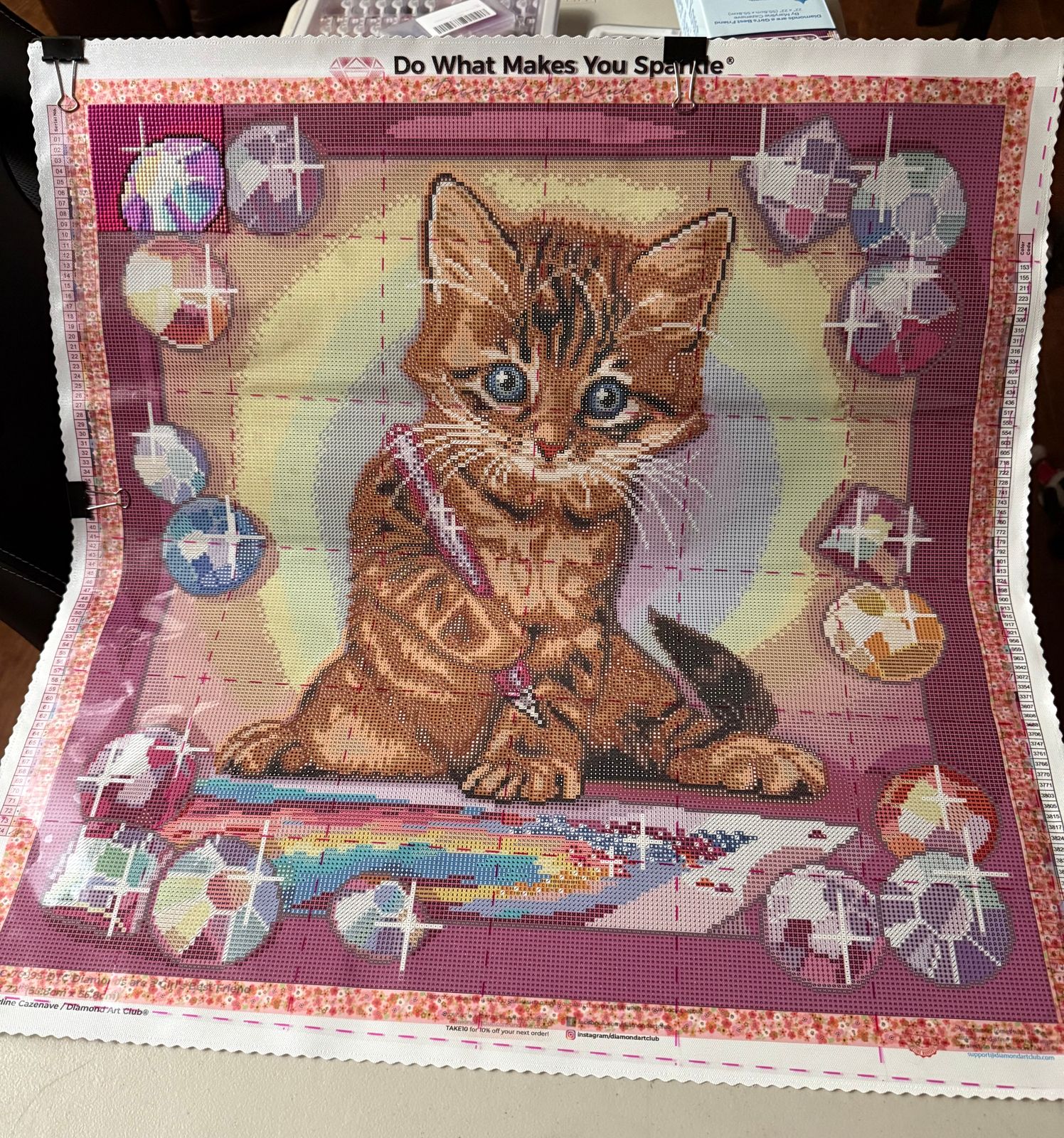 This kit was so much fun to work on. If you love kitties and diamond painting this is the kit for you! It's got everything color blocking and confetti painting areas. The shimmer and shine in this one was awesome! Took me about a month to work on.