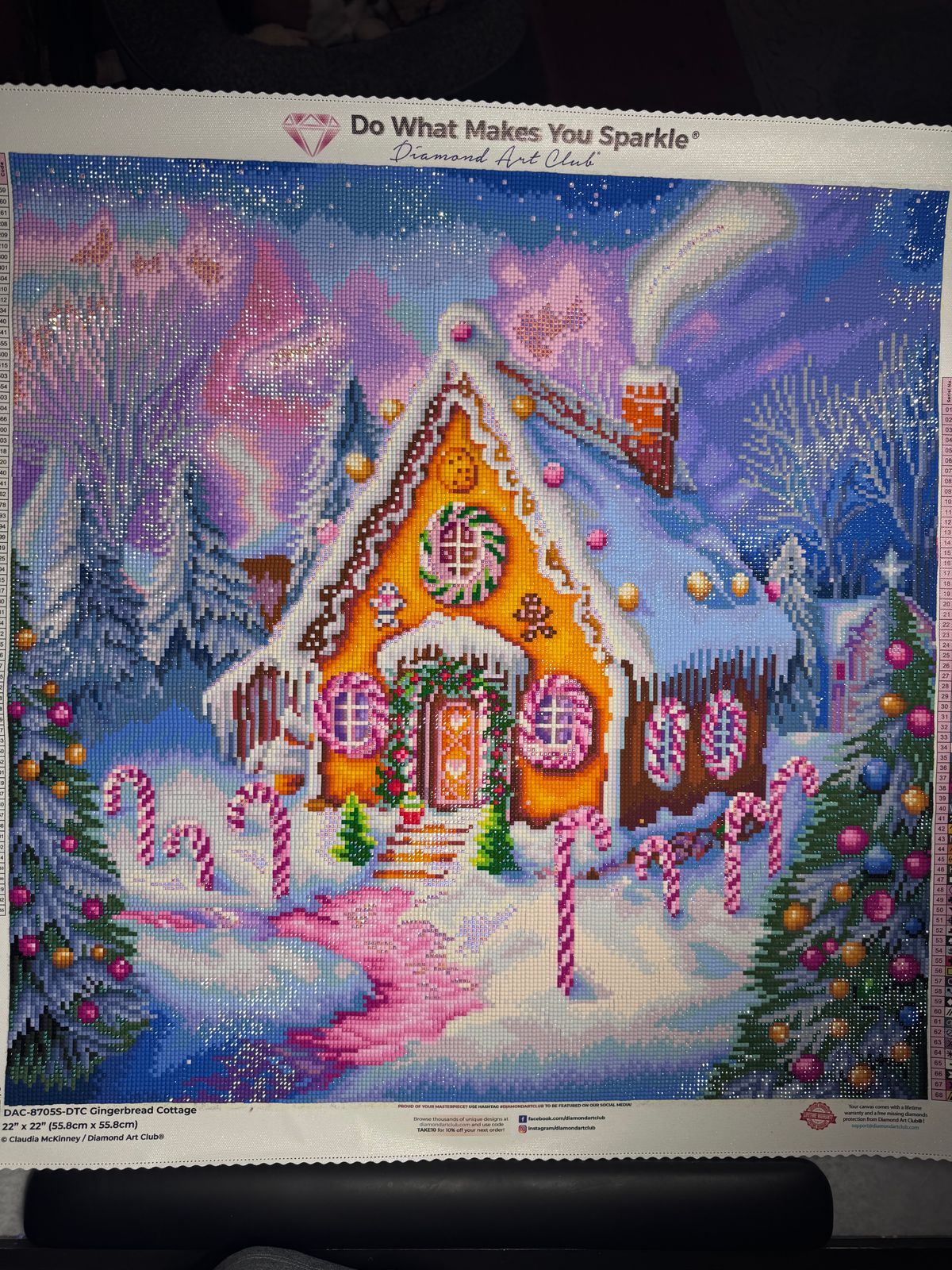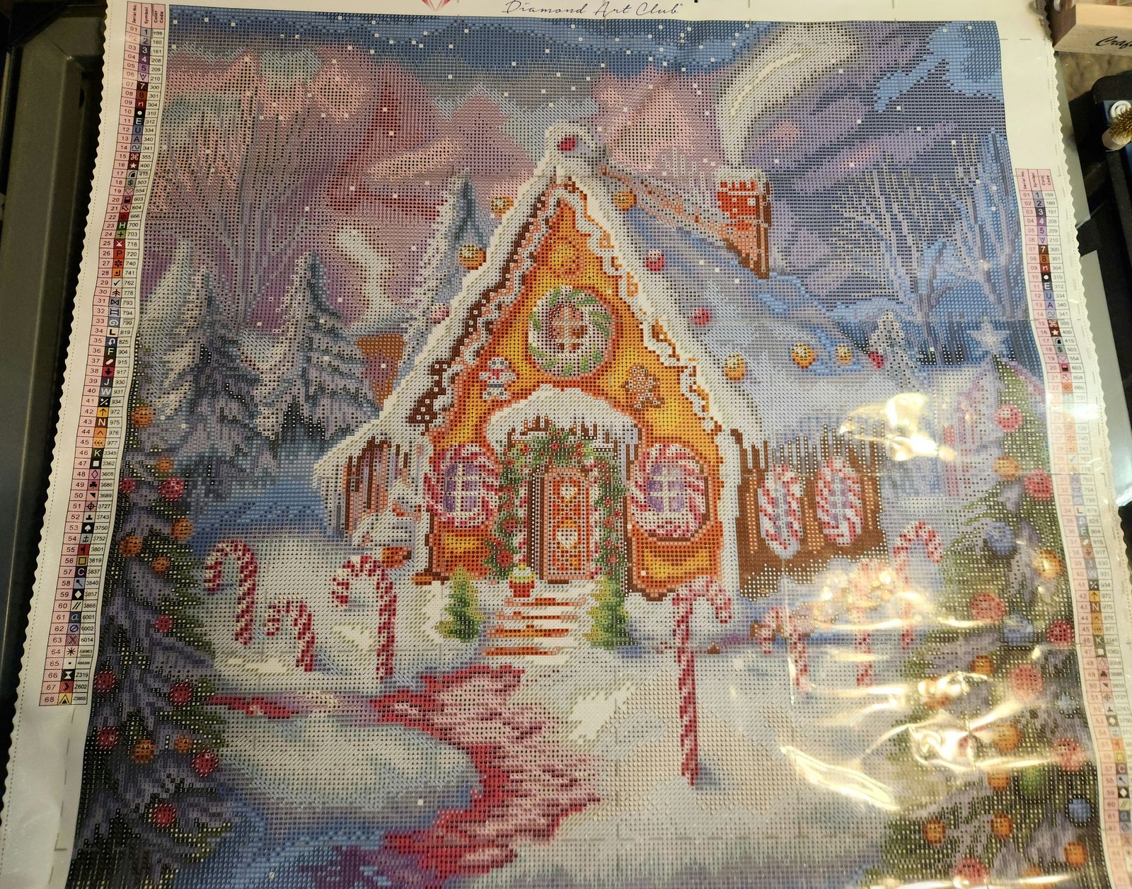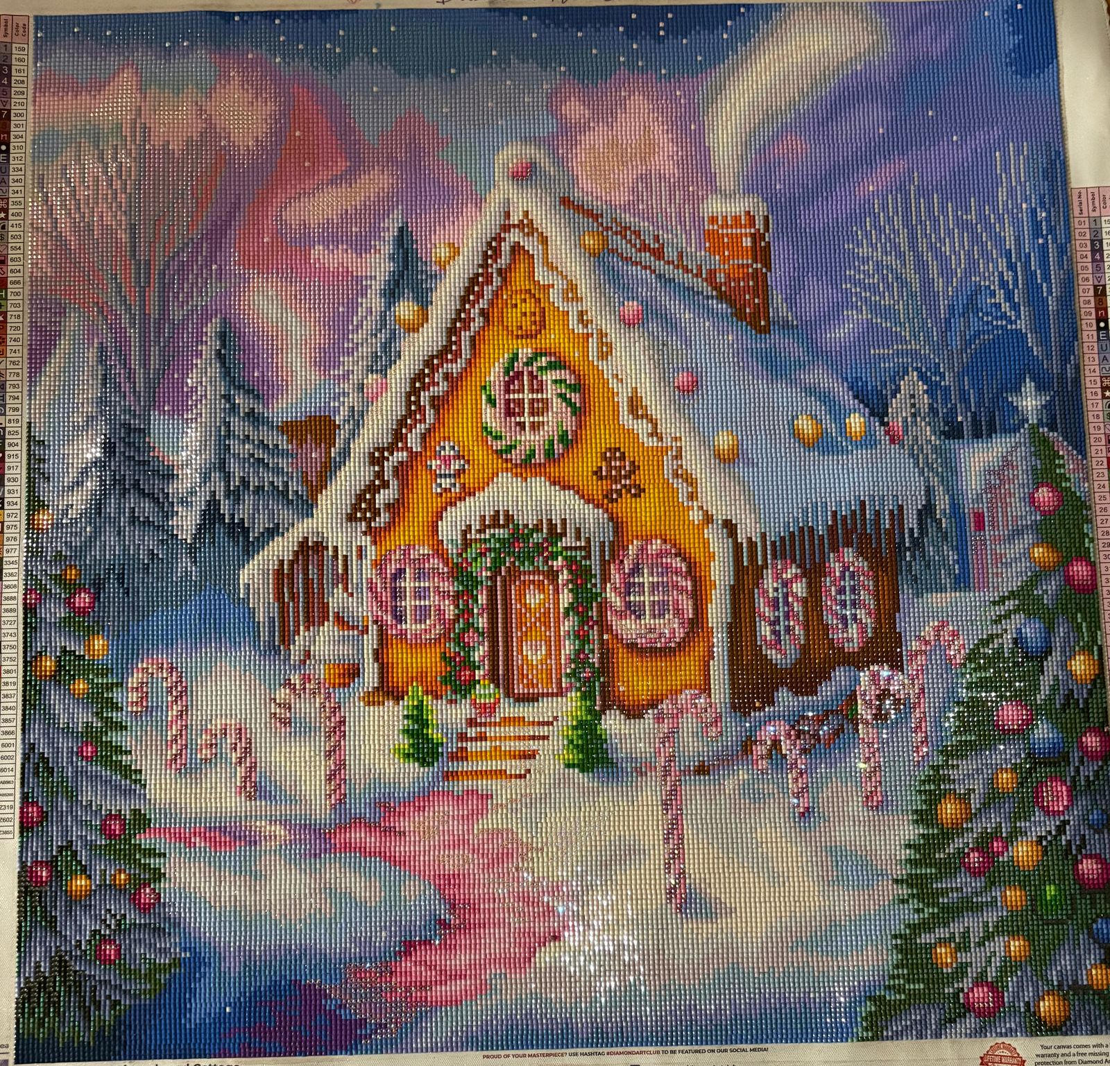 I absolutely love gingerbread houses. It has become my yearly tradition to diamond paint a gingerbread house.