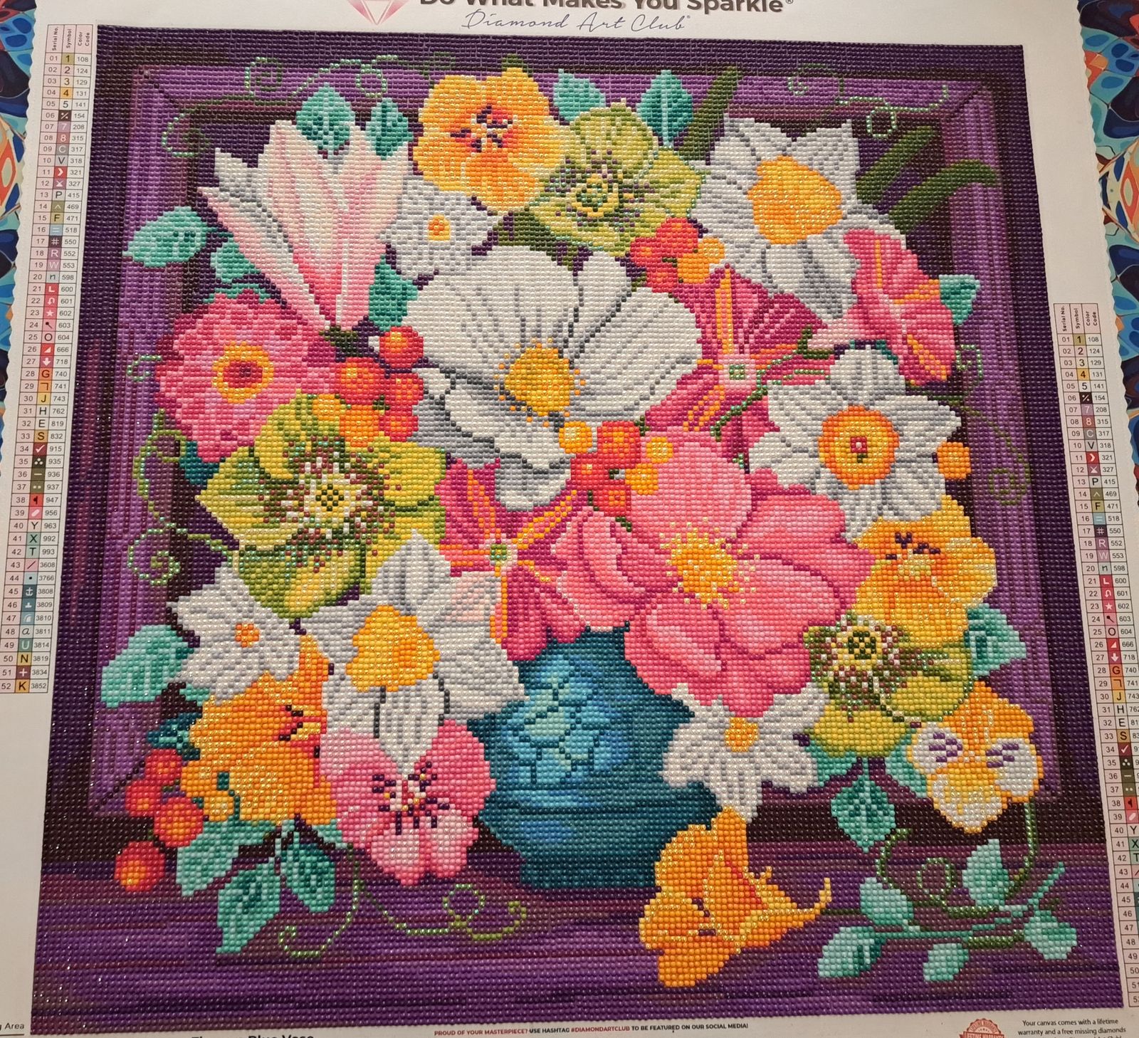I love all the colorful flowers in this kit and I can't wait to work on it. It's my next one in line from my stash. It's a smaller size so it should be perfect to frame and hang on a wall in our house.