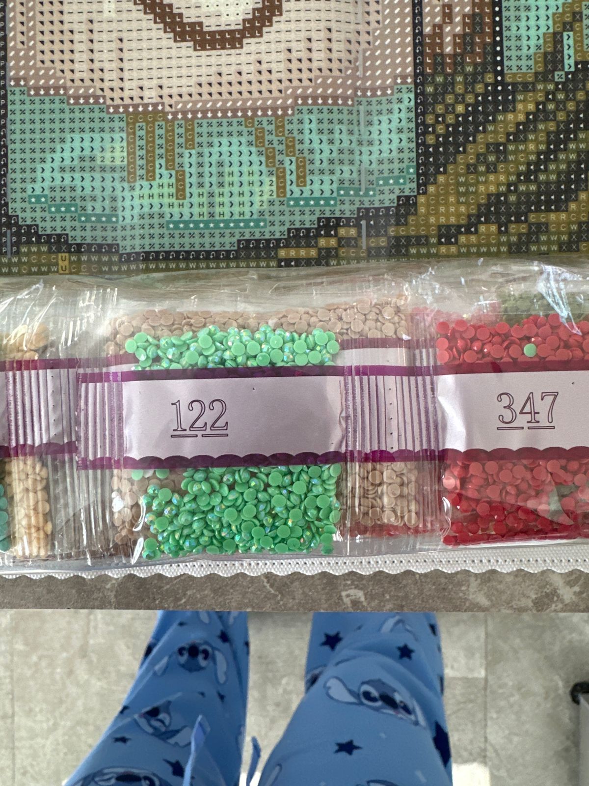 This was a joy to work on. The final piece is beautiful and very sparkly. There was quite a bit of trash but I had enough drills to complete it. I am not the best placer and I find rounds more difficult than squares. However, even I couldn’t ruin the final outcome. Loved working on this!