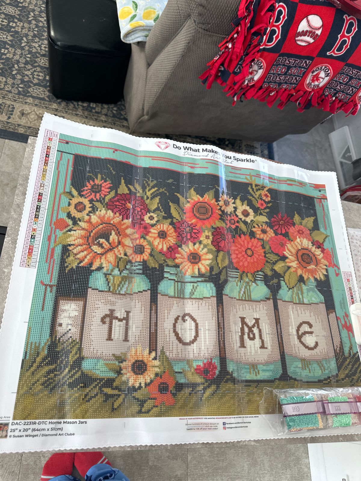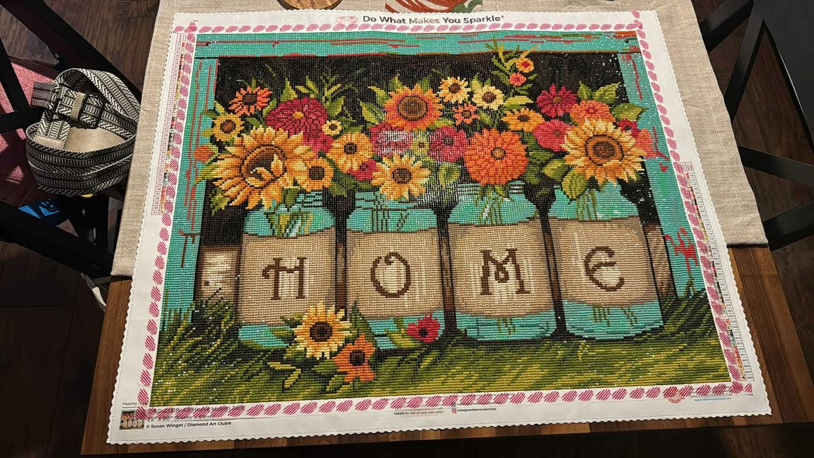 This was a gift for my sister. It turned out amazing and it was another enjoyable piece. It's hanging up in her home and is a great decor item for her to use.