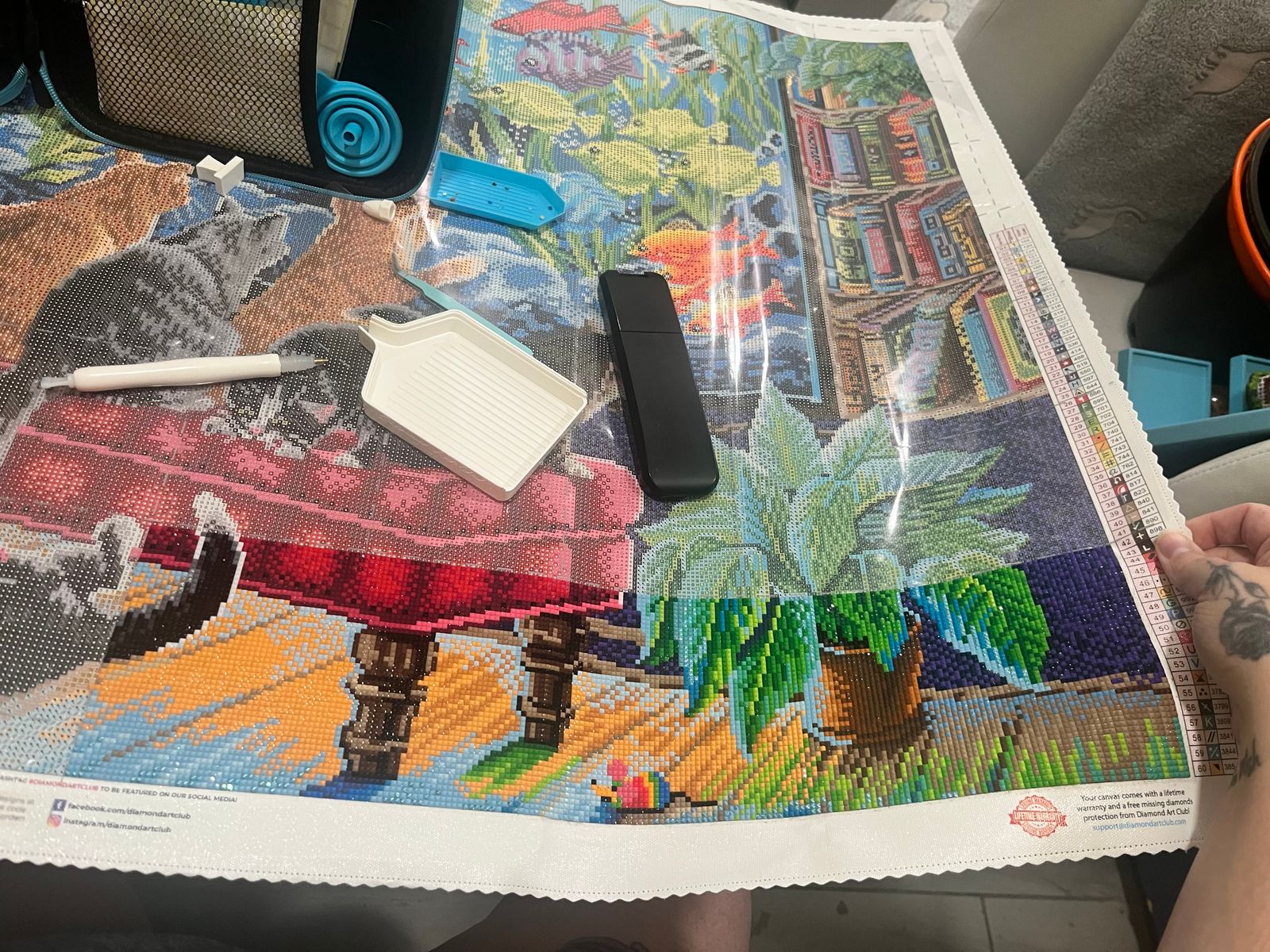 Wow I loved seeing this scene come to life. So colorful and realistic. A joy to work on with great drills and colors. I love cats so this was up my alley. I’m glad to have finally worked on it, I was afraid of its size, working on smaller ones first but what a joy it was.