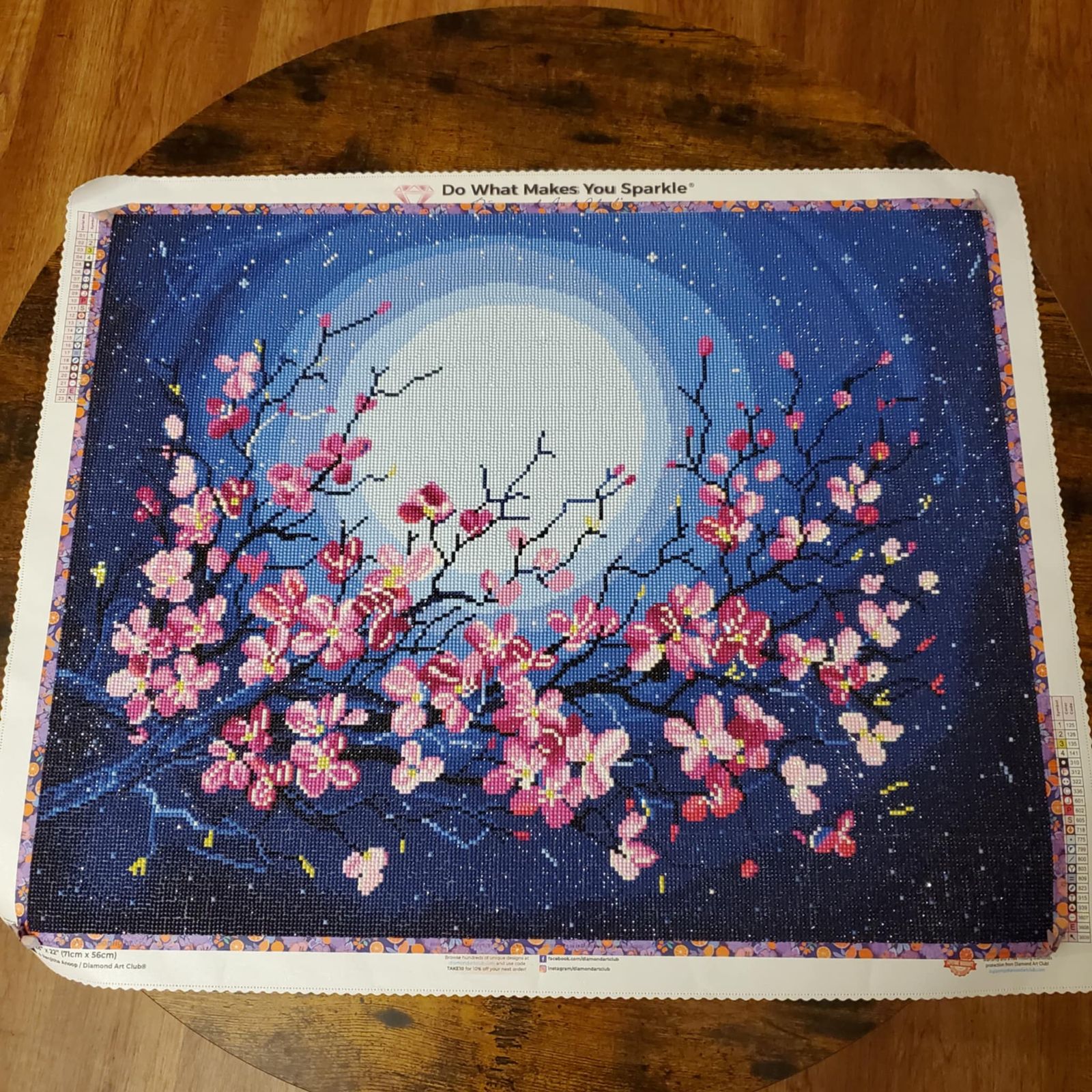 Nearly done with this and I’m so happy with how pretty it is. Lots of sparkle and gorgeous colors. I wasn’t too sure because I usually like squares but this round design is so nice! Can’t wait to finish up and frame.