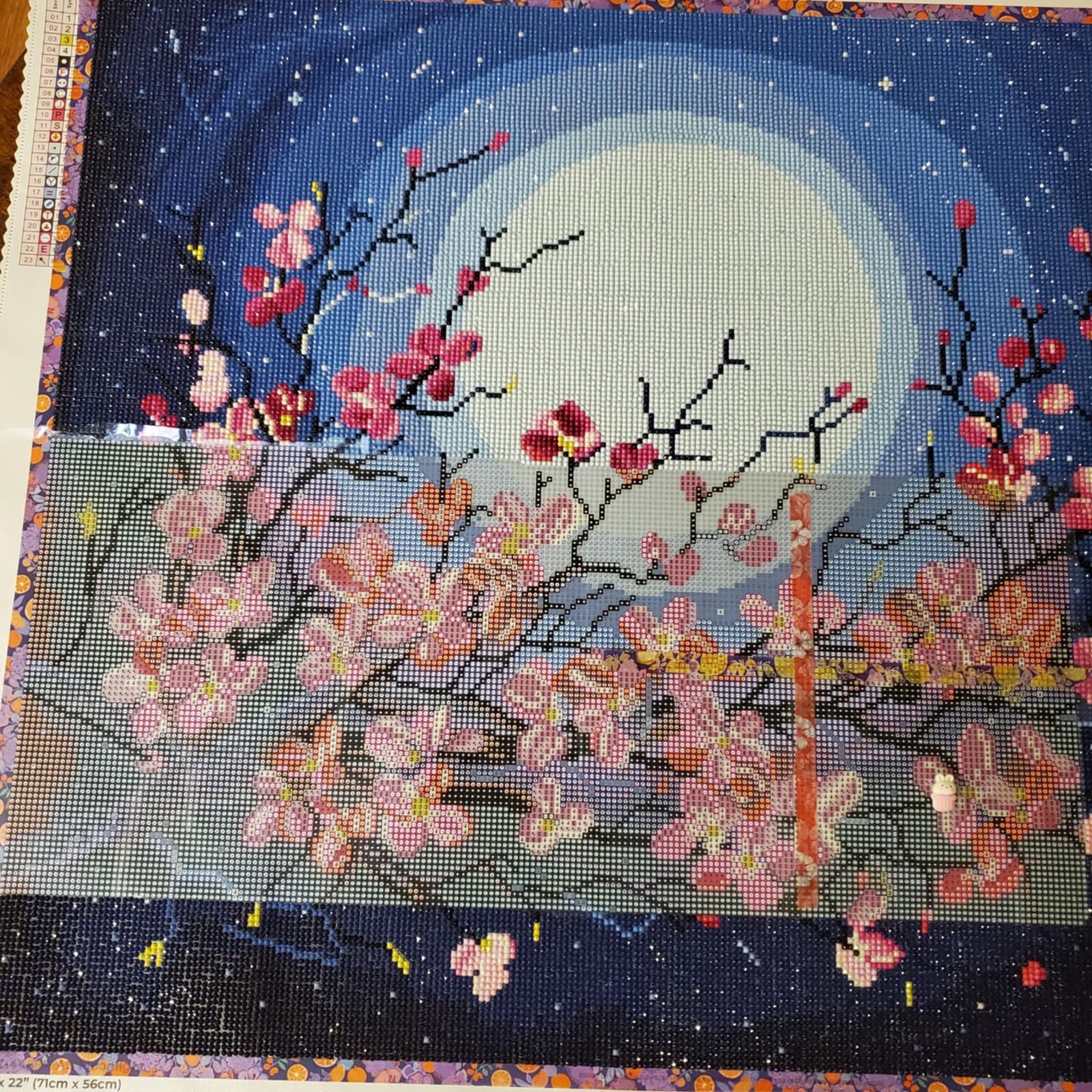This is a color blocking lover's dream! So much color blocking with the moon and the light surrounding the moon. A nice confetti mix though when you work on the flowers/cherry blossoms! The ABs were sprinkled mostly in the flowers. This is a nice kit to do when you want a break from heavy confetti or square kits!