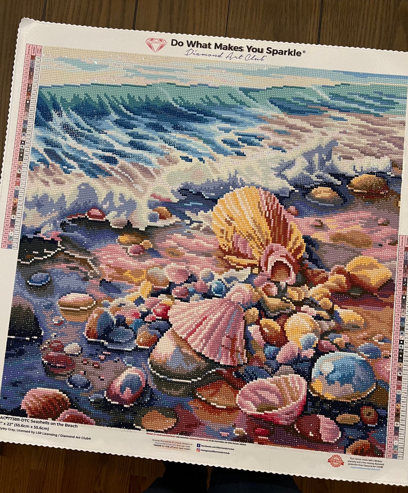 Love this one a lot, I want to pick up shells. Round drills, size 22x22 ,love the colors.