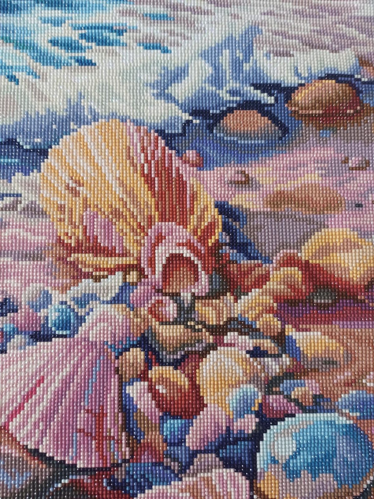 What a change to what I'm used to doing, small and quick to do. This was a pleasant break from my more complicated canvas. Love the pastel colors. This will be hanging in my granddaughter's bathroom.