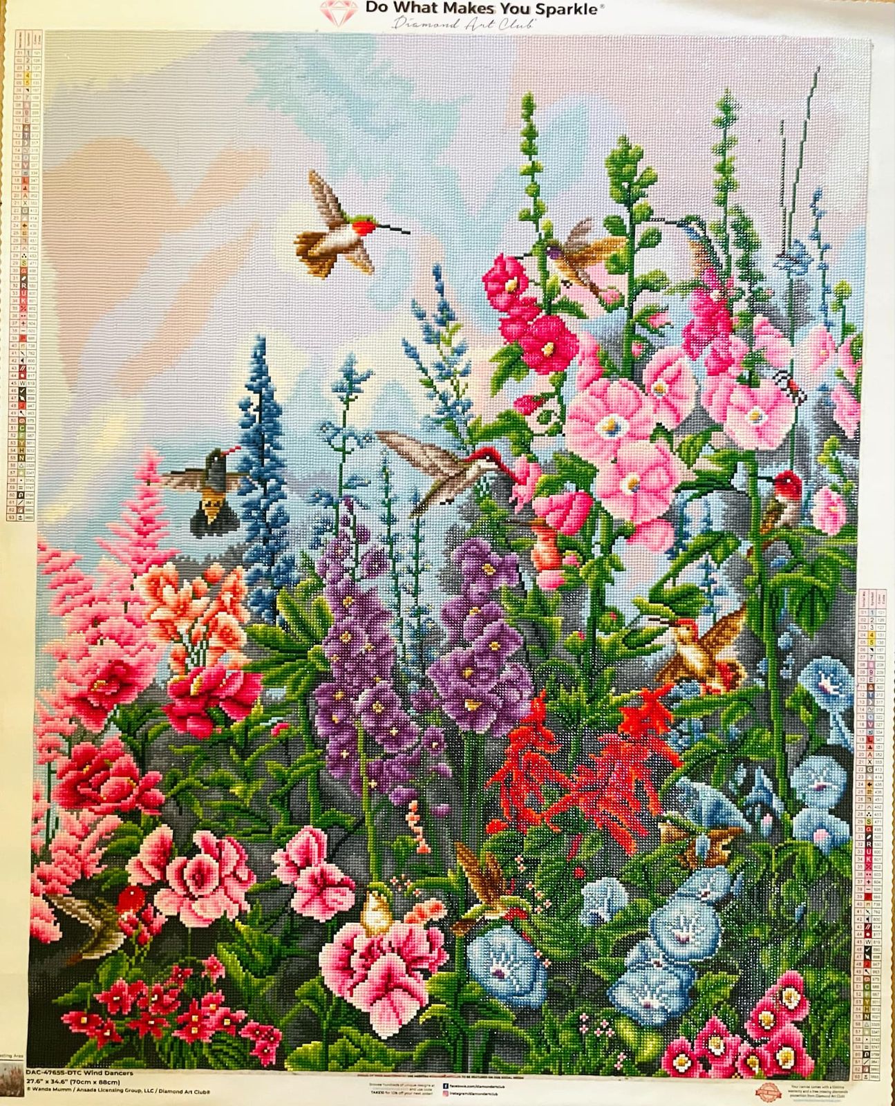 Songbird – Wind Dancers is absolutely gorgeous! The colors are vibrant, the hummingbirds shimmer beautifully, and the canvas quality is amazing as always with DAC. It’s a big project, but so worth the time — every section sparkles! One of my favorite kits yet. 💎🕊️