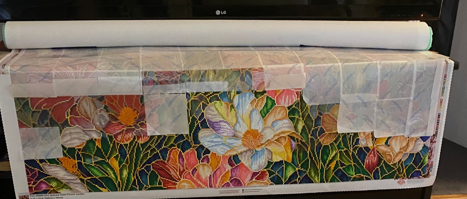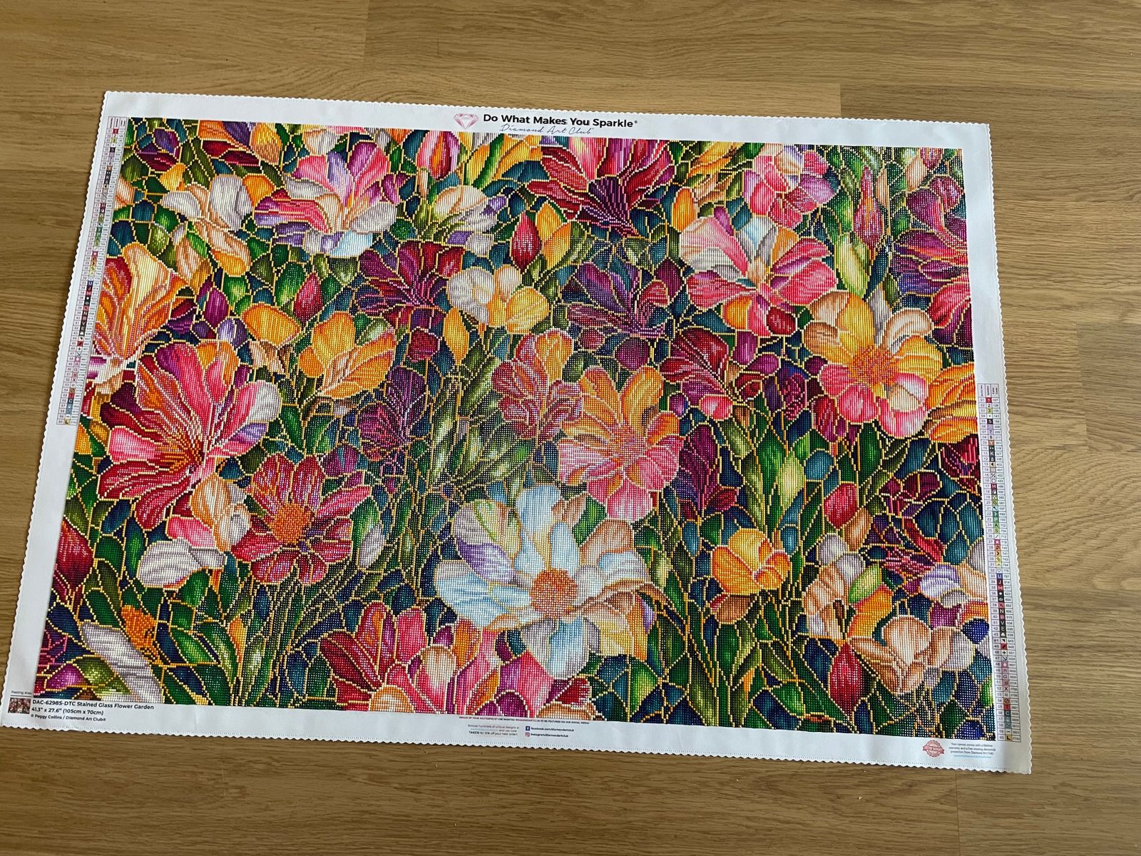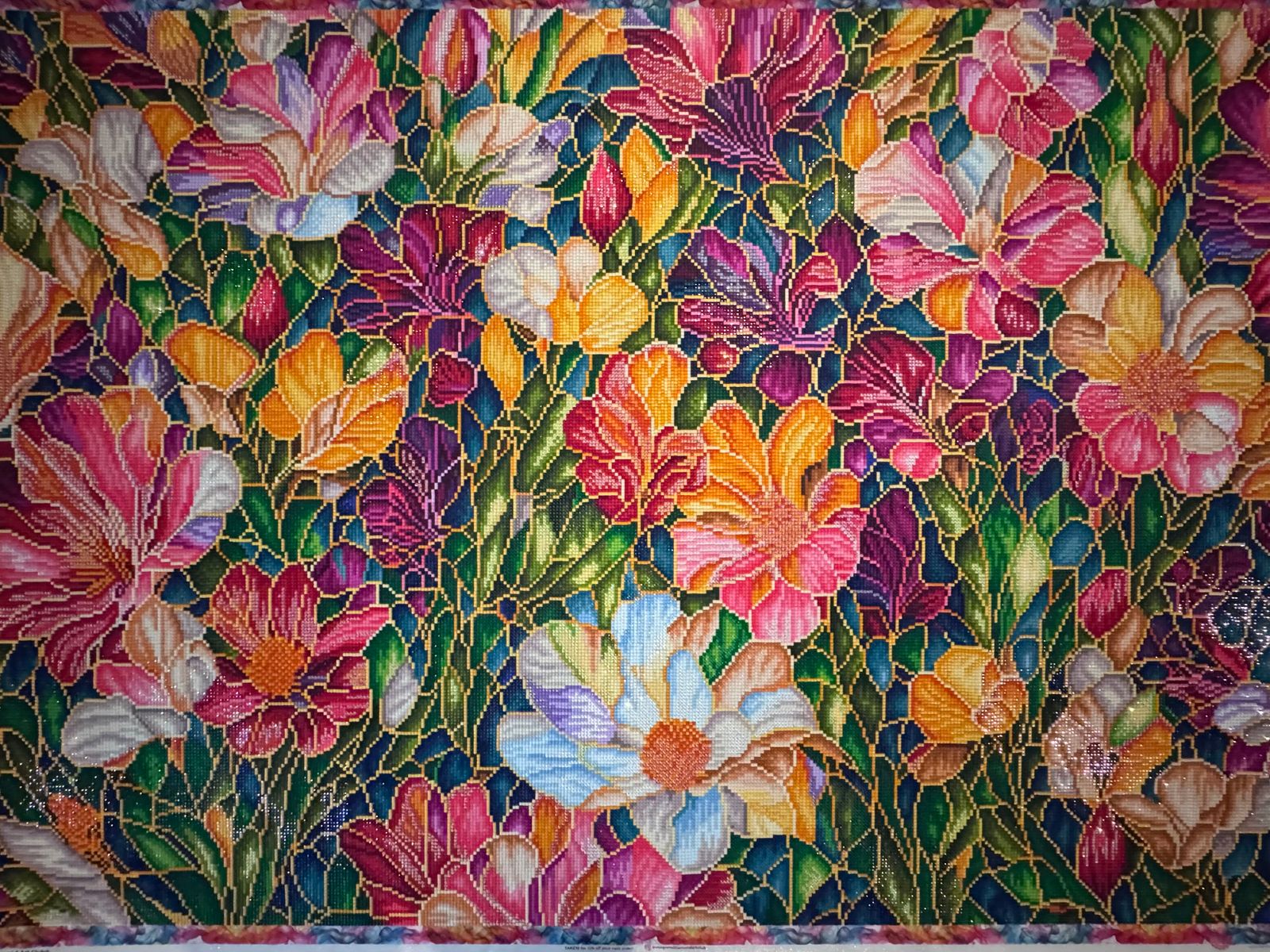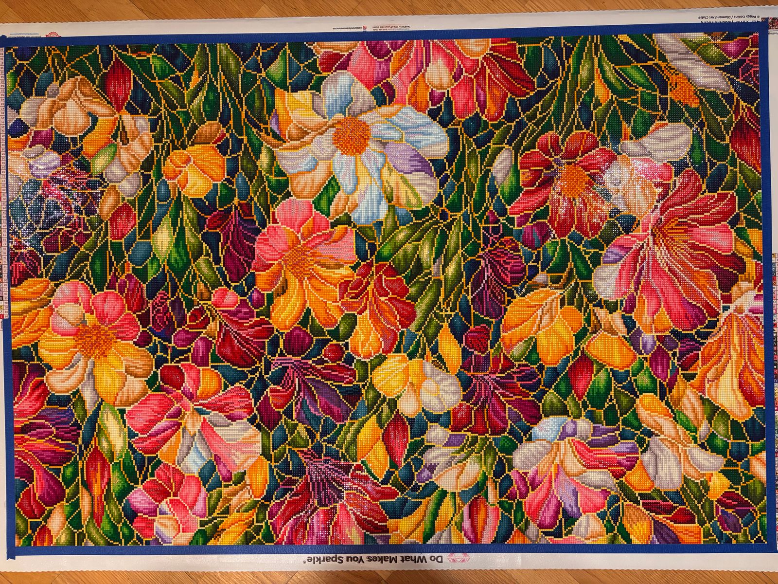 I received this beautiful, stunning canvas last week. I have been working on daily. Love all the colors. I can't wait to hang it when it is completed. It is more beautiful in person than in any picture I am able to take of it.