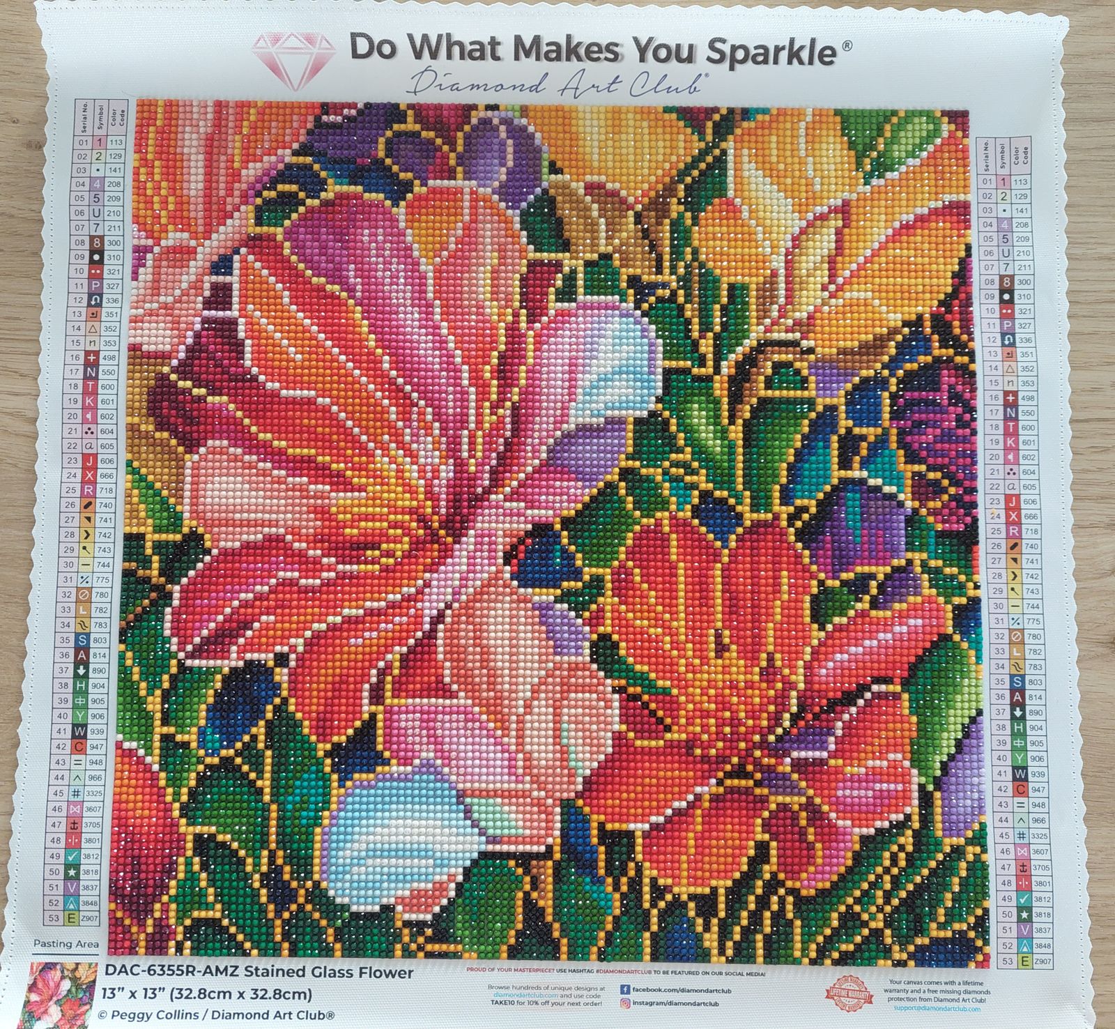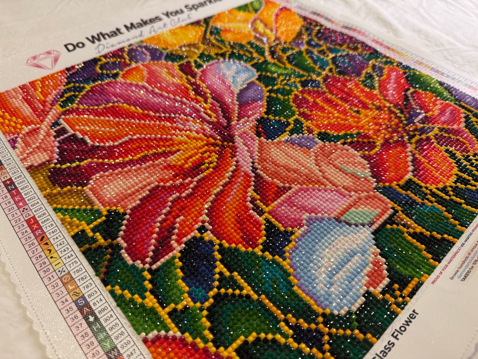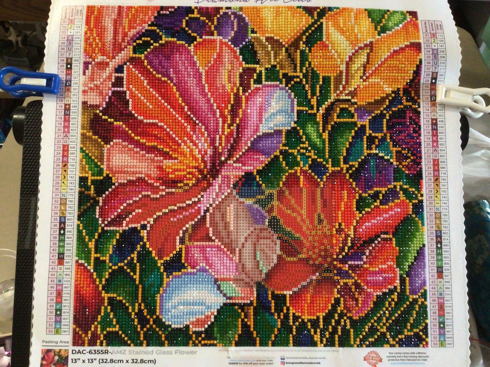 Diamond Painting Stained Glass Flower-AMZ 13" x 13" (32.8cm x 32.8cm) / Round with 53 Colors including 3 ABs and 1 Fairy Dust Diamonds / 13,689