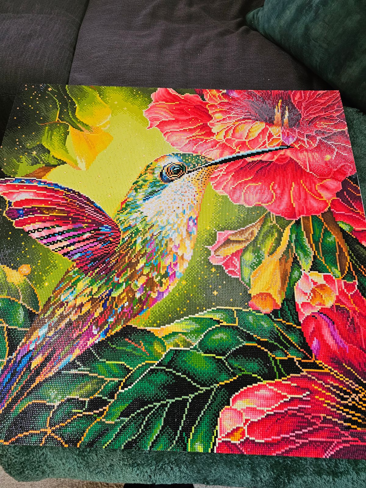 This was my first large square diamond painting. I felt it had a good amount of colour blocking and confetti areas to practice and to see which I liked more. The colours are beautiful and vibrant. The shine is spectacular, I had a lot of fun.