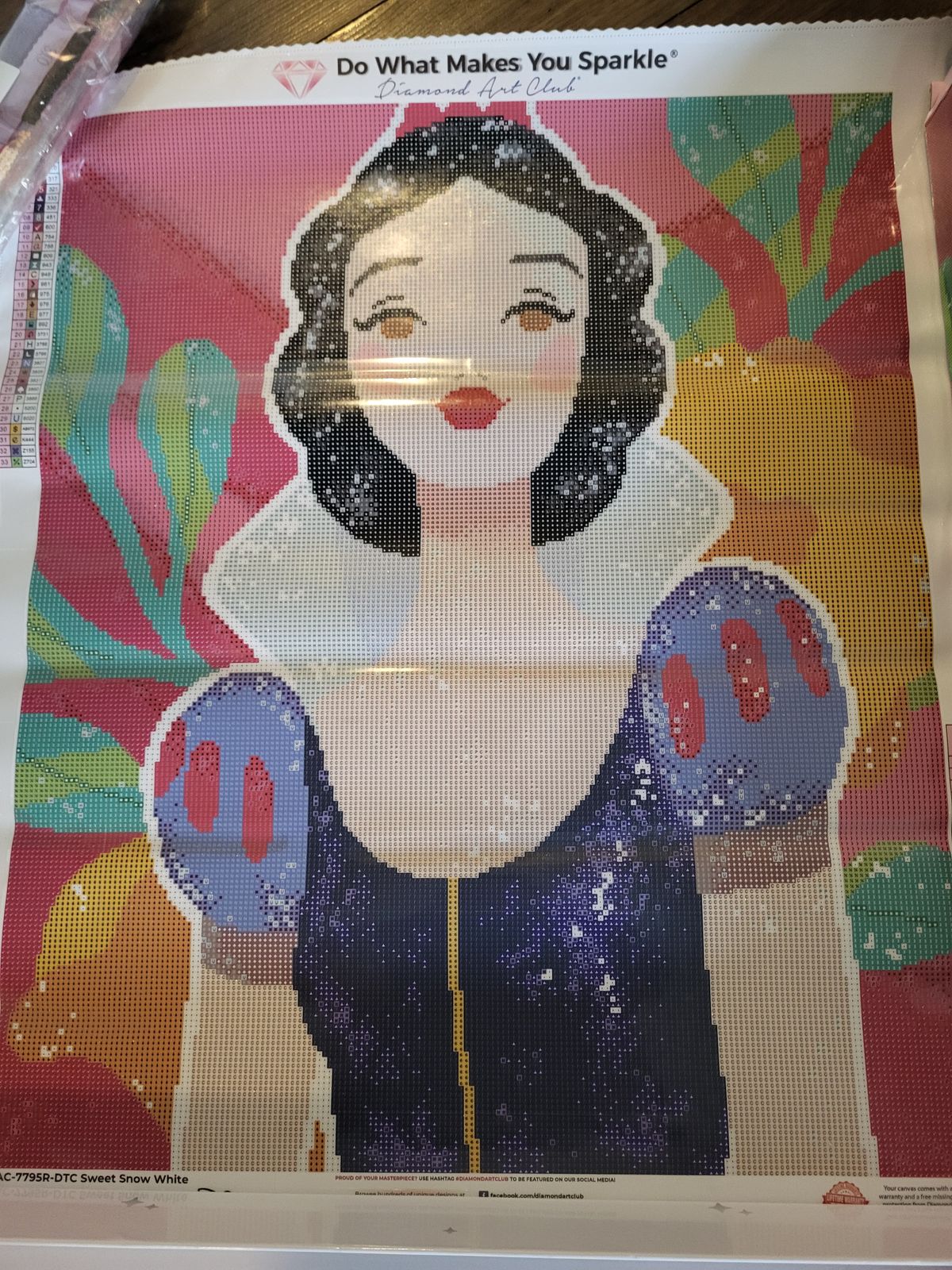 I'm so excited to receive this diamond painting. She was my first wish list item and she is gorgeous 😍 The drills are so sparkly and bright. I can't wait to finish her