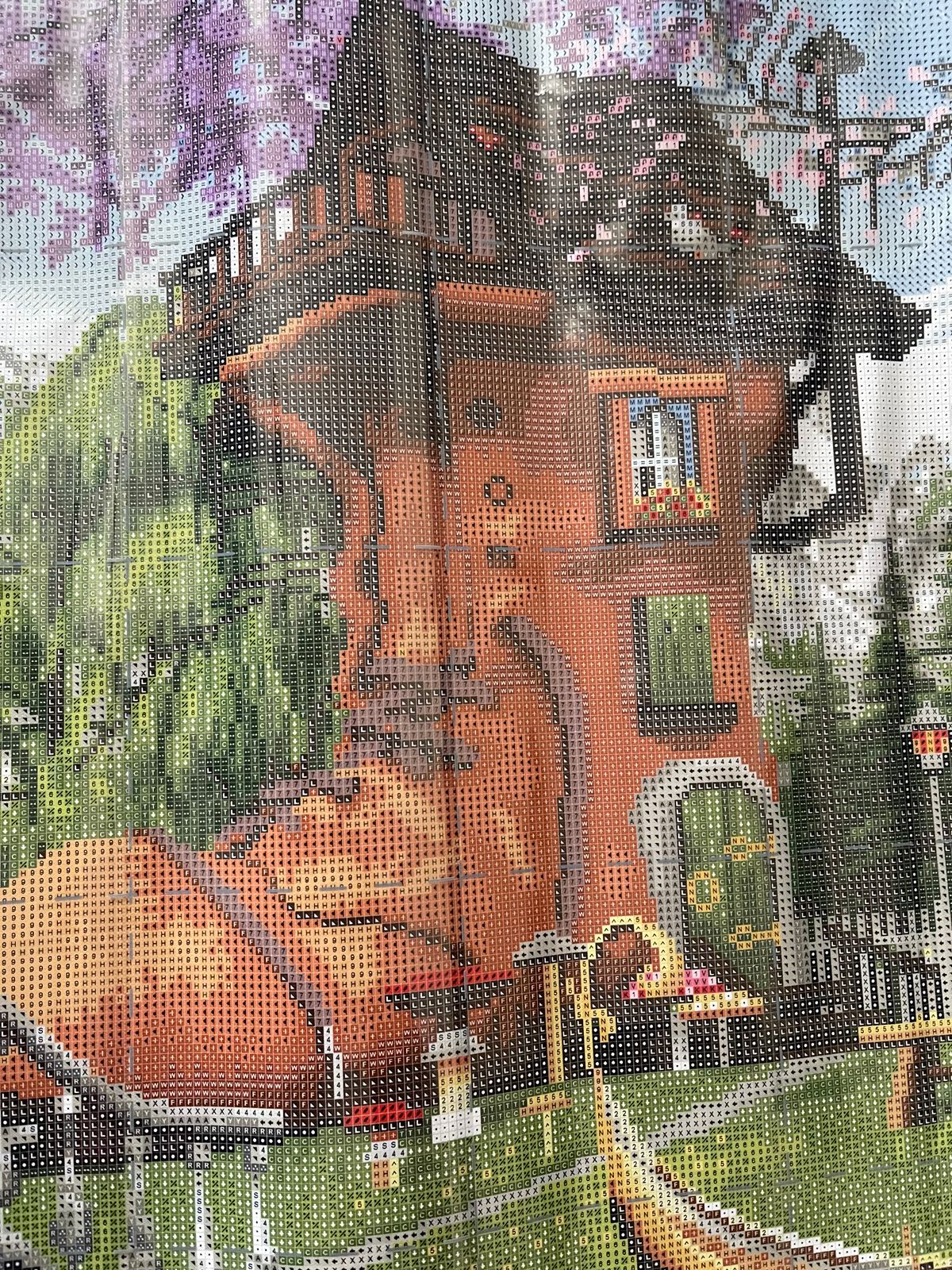 I needed a break from portraits, dark colors and confetti and this diamond painting fit the mood. It’s only 57 colors but there are purples, reds, blues, and greens. It’s a painting that gives a feeling of sunshine and happiness.