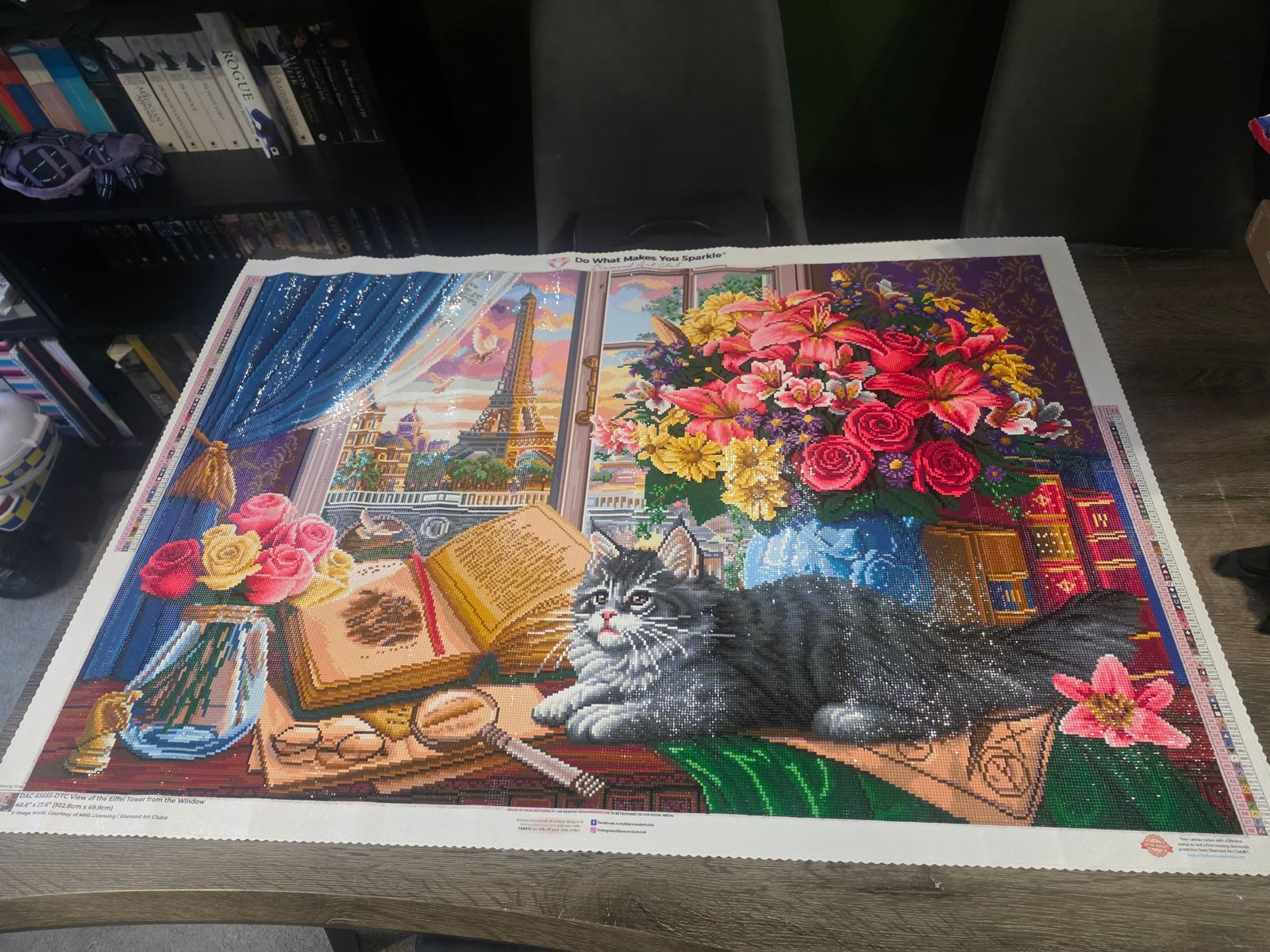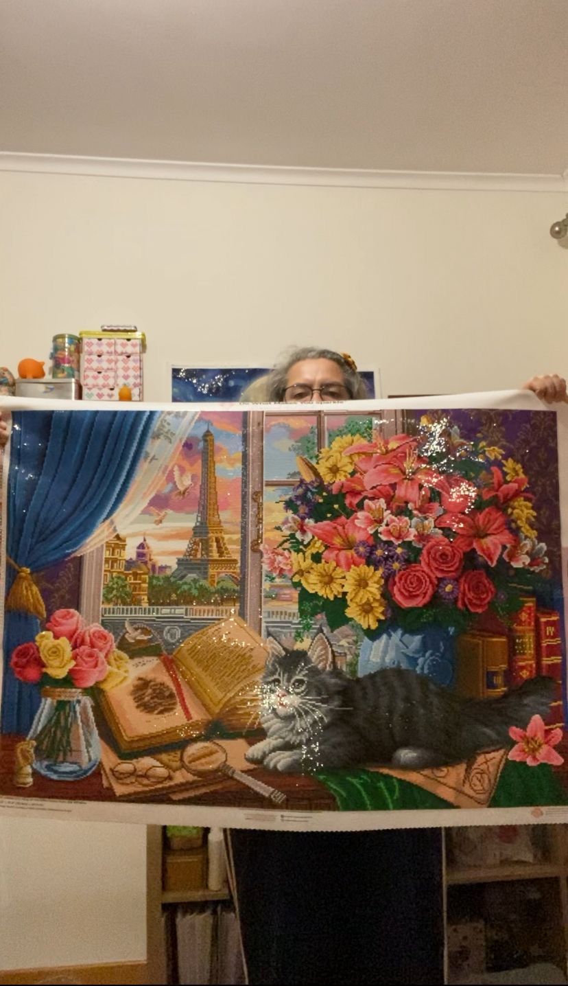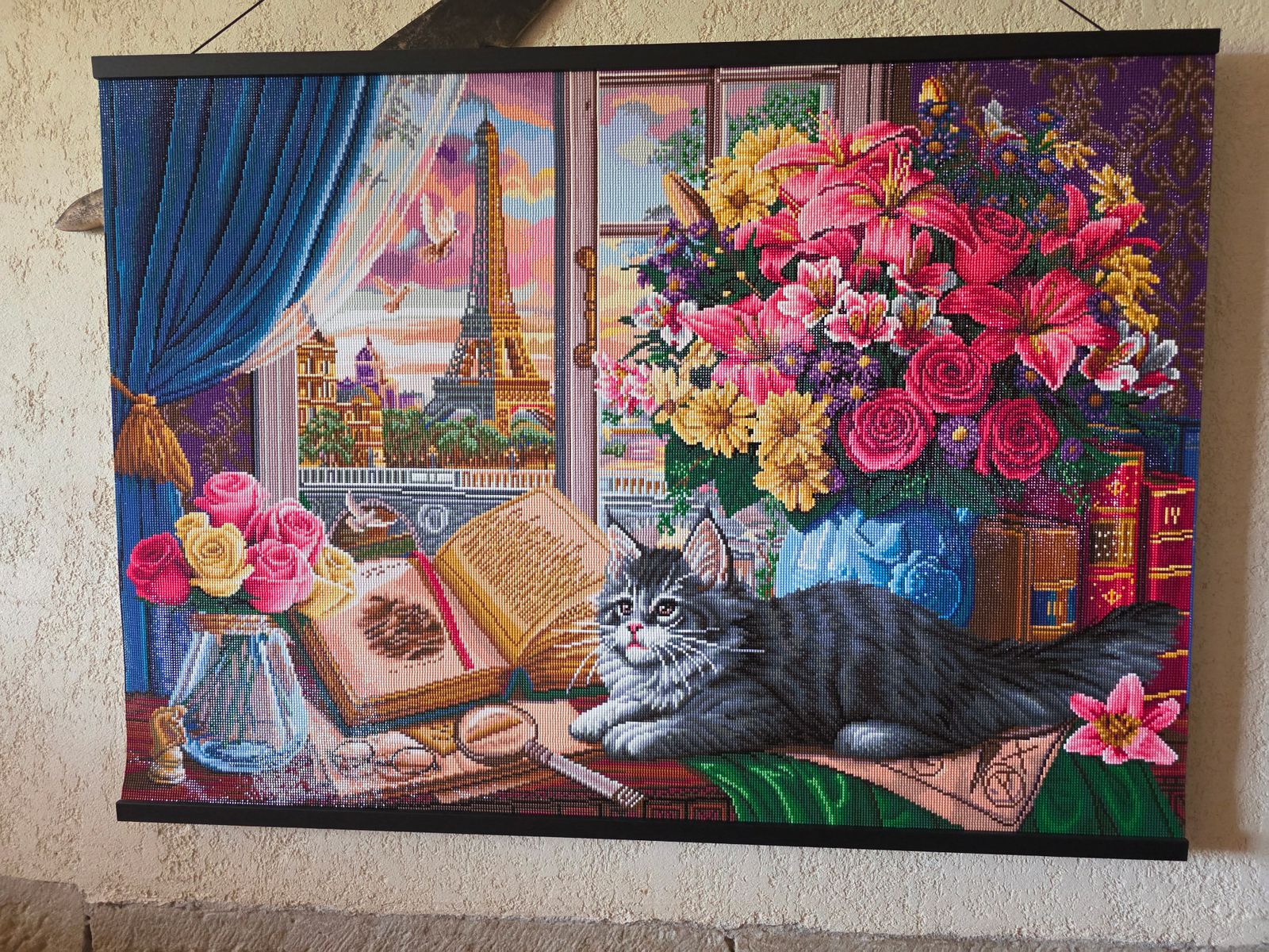 Image très lumineuse très agréable a faire. Si vous aimez les chats les fleurs et Paris cette toile est faites pour vous