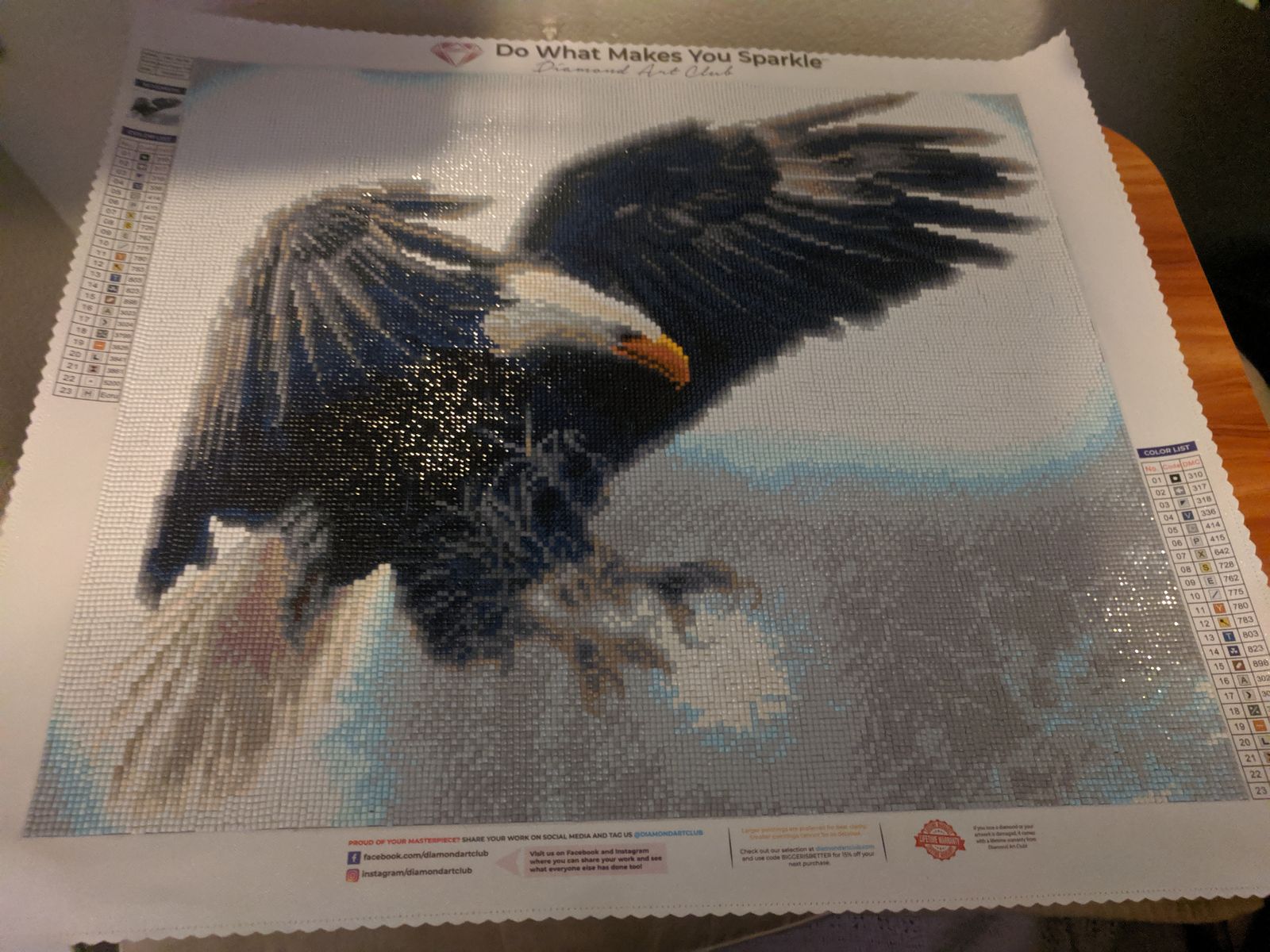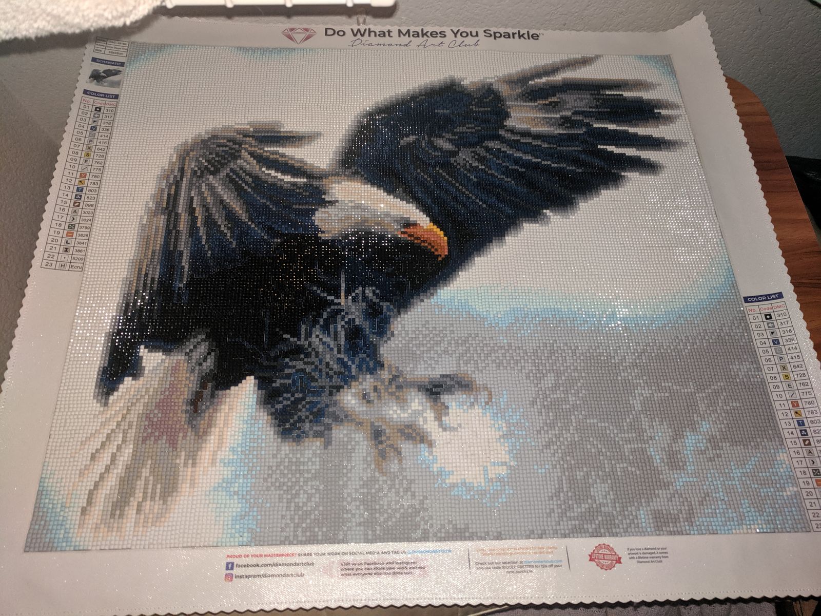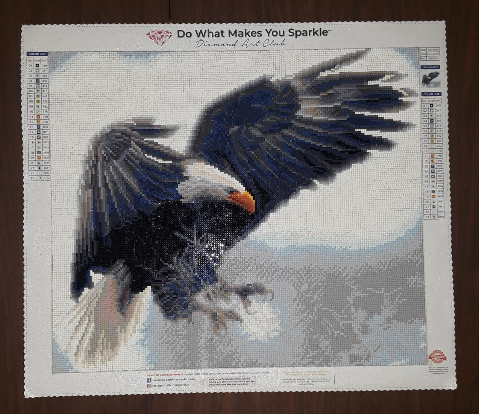 This is my first square diamond project. The picture is stunning, and although I have not completed it, as I finish areas the canvas becomes “ alive”. My husband is so impressed that he took pictures of it, even incomplete! I highly recommend this kit!
