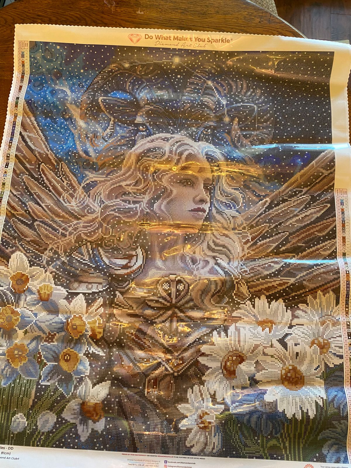 This kit was a slightly older kit. It didn't have the perforated cover. The drills were good. There was a strip in the middle of the canvas that did not have good stick. I used some liquid adhesive and it did work well enough to complete the painting. This kit contained quite a bit of confetti, which I enjoyed. As always, Dakota's art makes gorgeous diamond paintings.