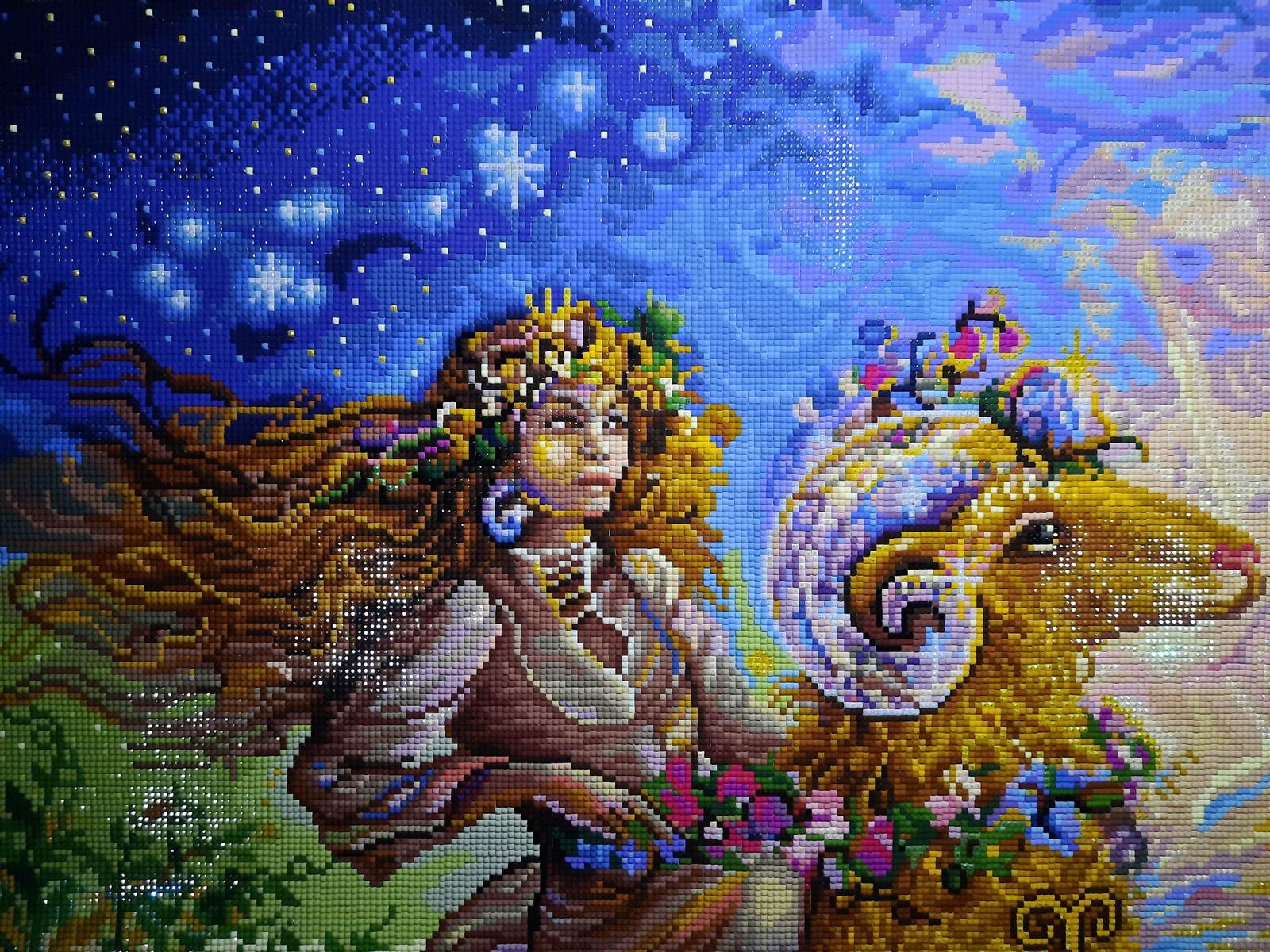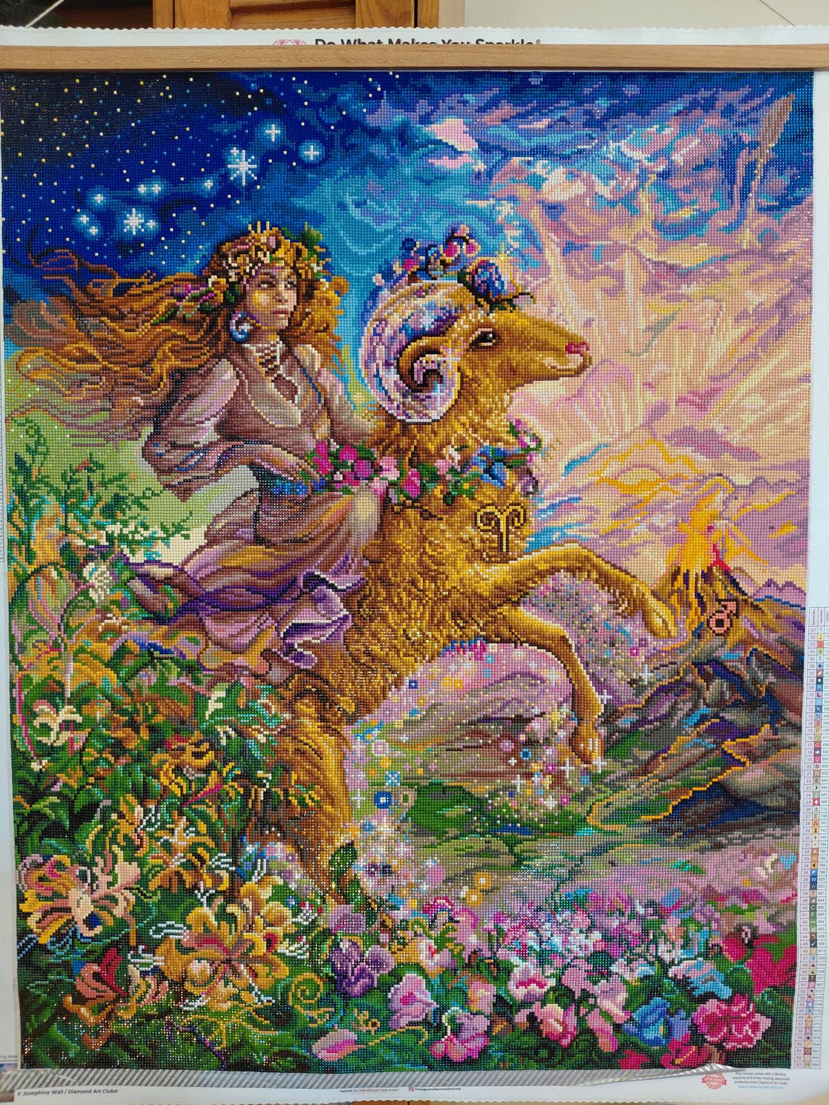 Aries is my daughter’s zodiac sign so I had to get this one as soon as I saw it. The rendering is spectacular, there is so much detail throughout the painting. The drills look great, this one has 5 AB’s, which I believe is the most out of the Josephine Wall zodiacs. I’m very happy with my purchase, another beautiful addition to my zodiac collection.
