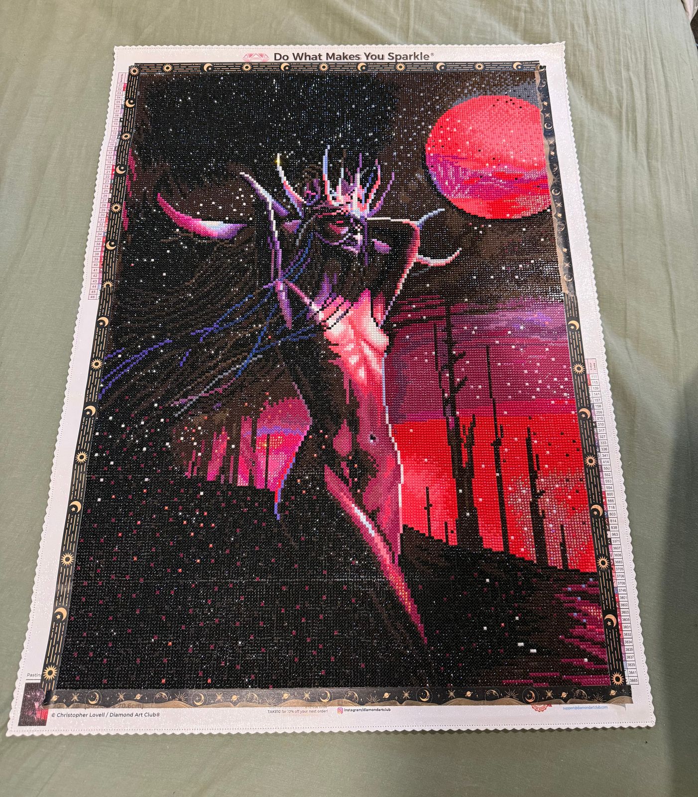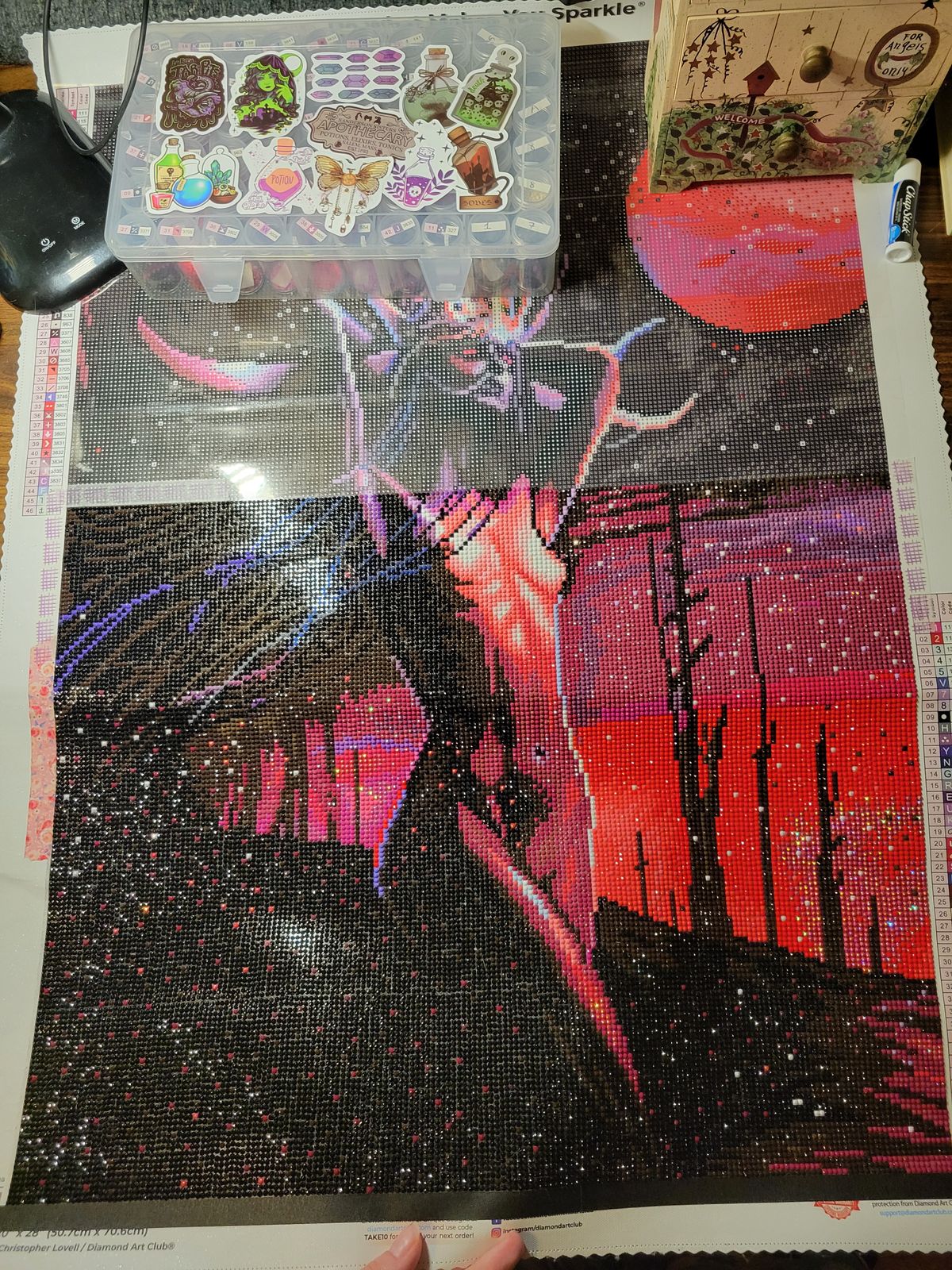 I really enjoyed working on this piece. Christopher Lovells art is stunning and the rendering of this piece was amazing. The round drills are so sparkly and I had little to no trash drills which helped with the enjoyment of working on this. Obsessed with this 🤍