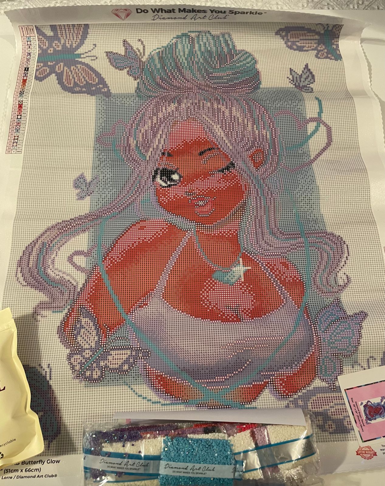 I recently got the Butterfly Glow diamond art kit by Rawsueshii from Diamond Art Club, and I'm in love! The colors are vibrant, the details are stunning, and the process was so relaxing. The final result is a beautiful piece that adds a touch of magic to my space. Highly recommend for any diamond art enthusiasts! 🦋✨