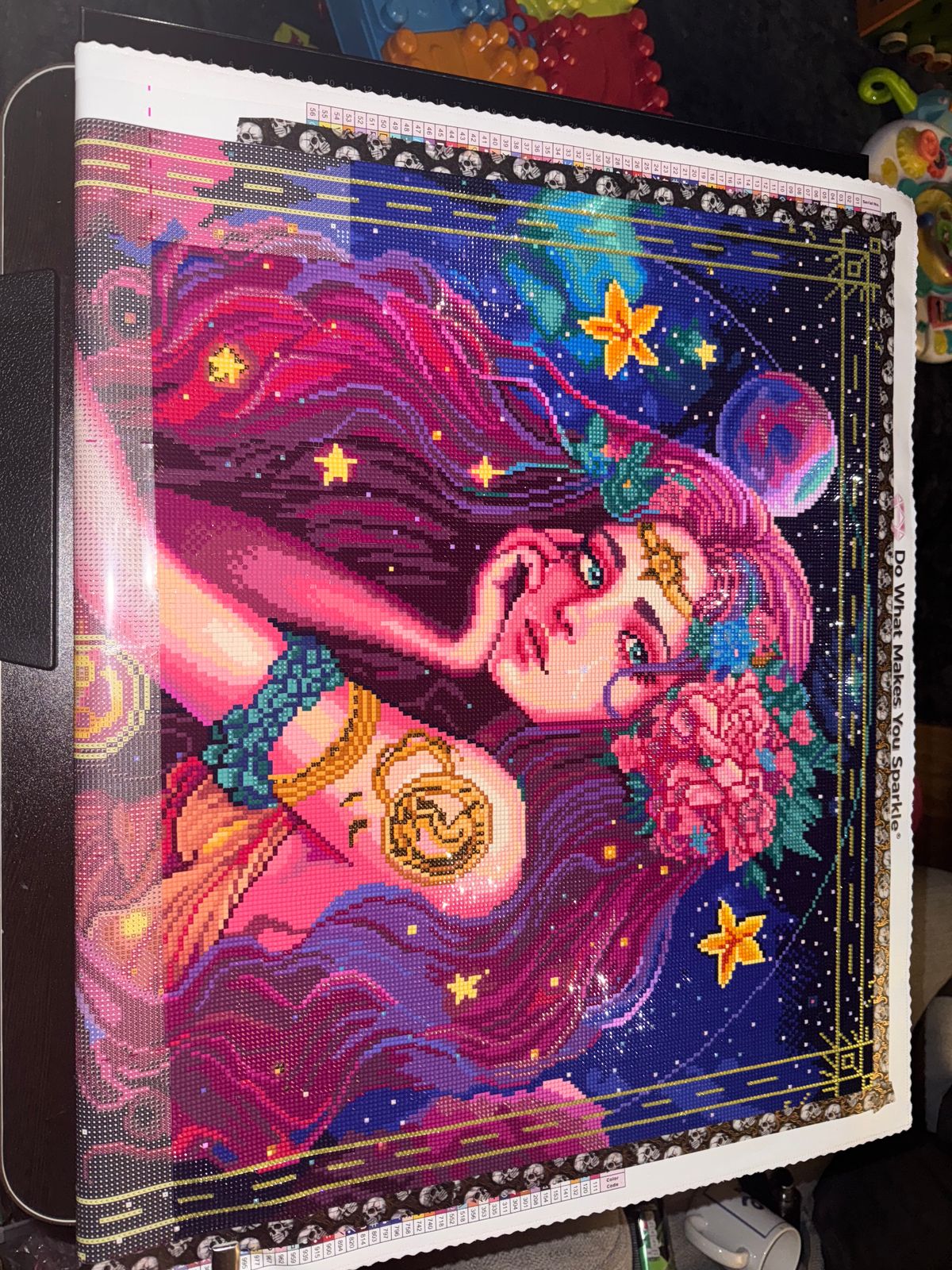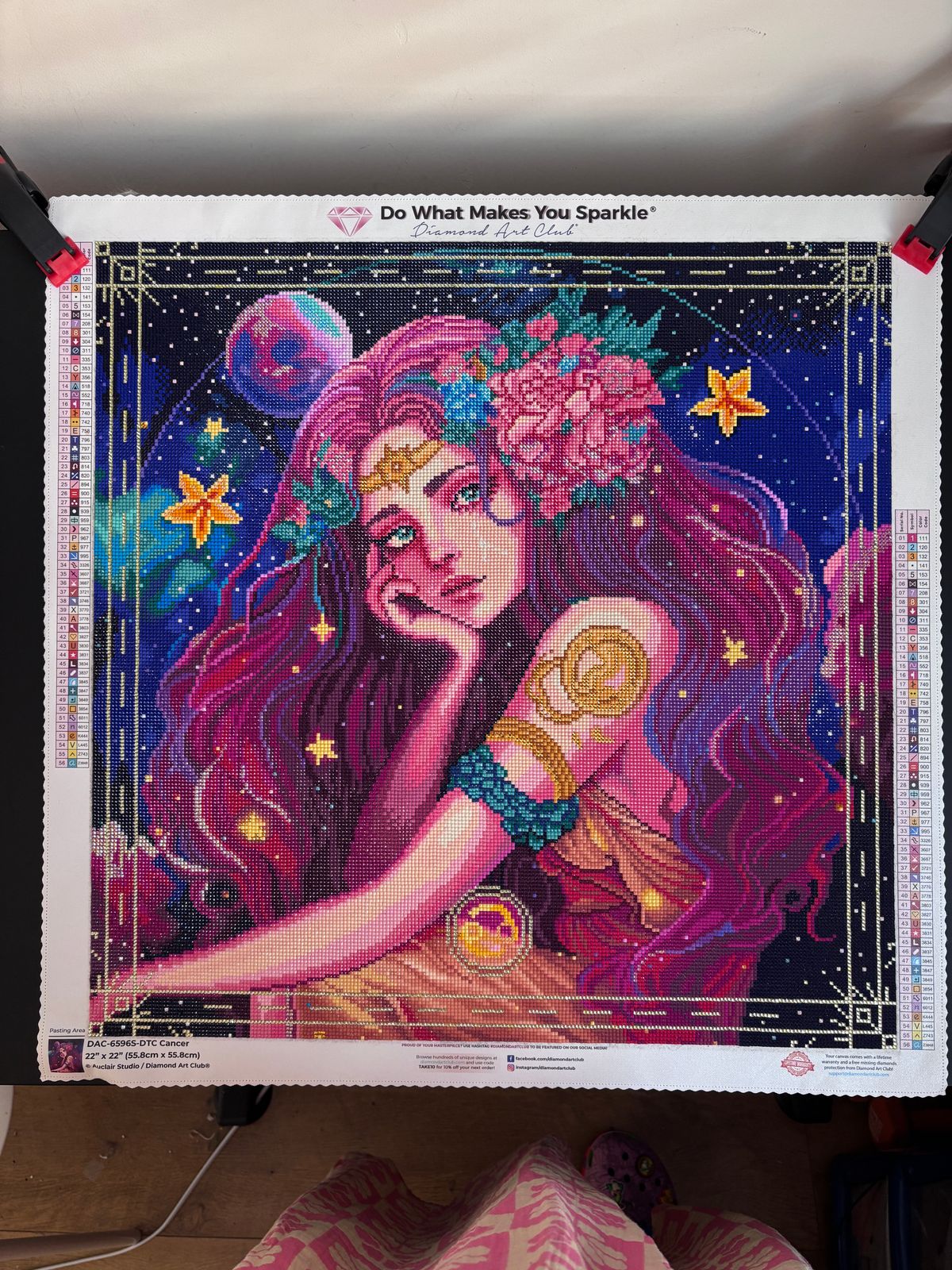 I was a little apprehensive going in as I’ve only ever done rounds before but I needn’t have worried - I’m fully a squares girlie now! This painting was an absolute delight - beautiful range of colours, lots of sparkle and a decent size to not feel overwhelmed. I’m not the biggest fan of the iridescent diamonds - they look incredible but they’re almost a little too shiny/sparkly that it was sometimes had to know if they were fully placed. But it looks stunning so it’s all good in the end!