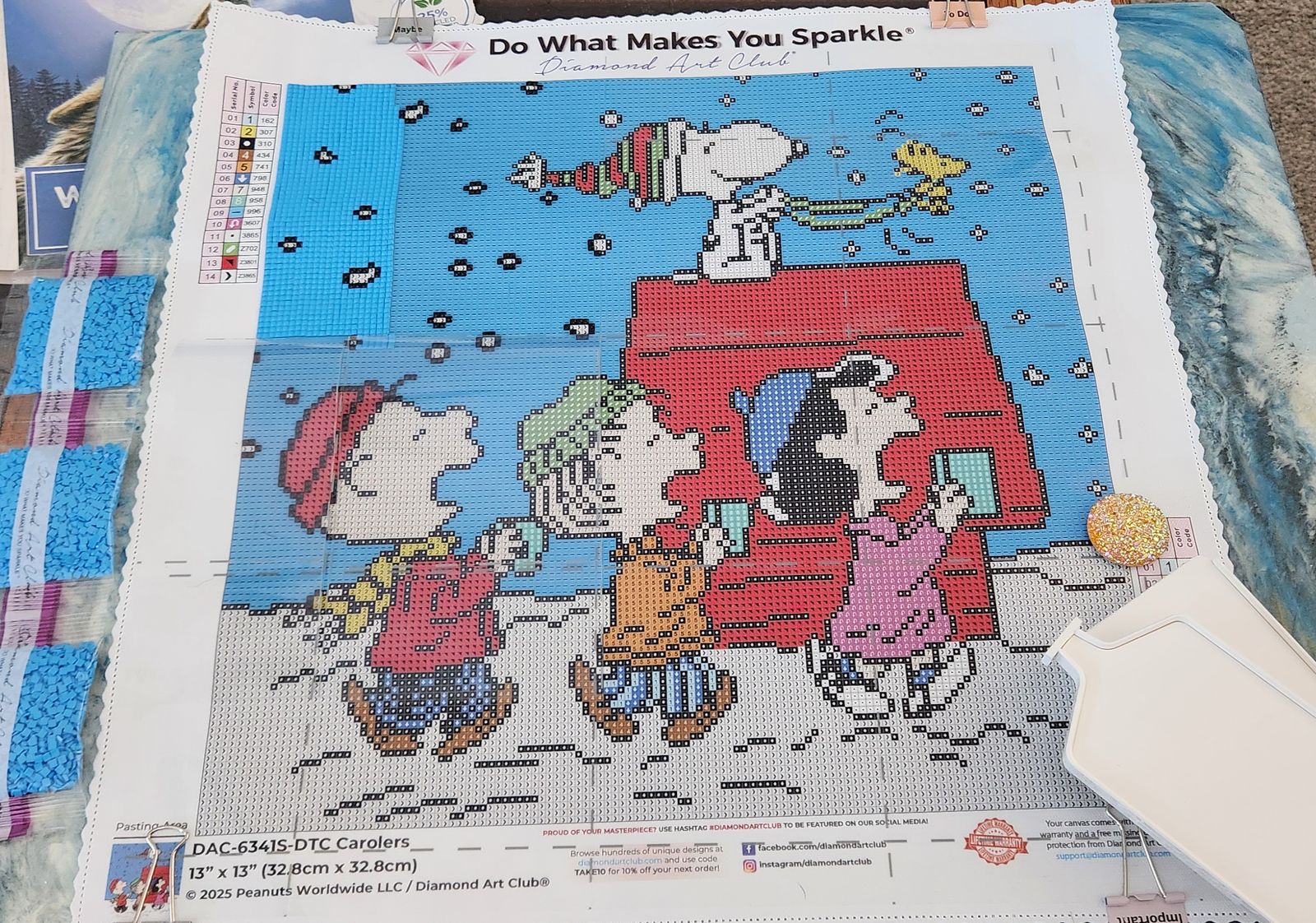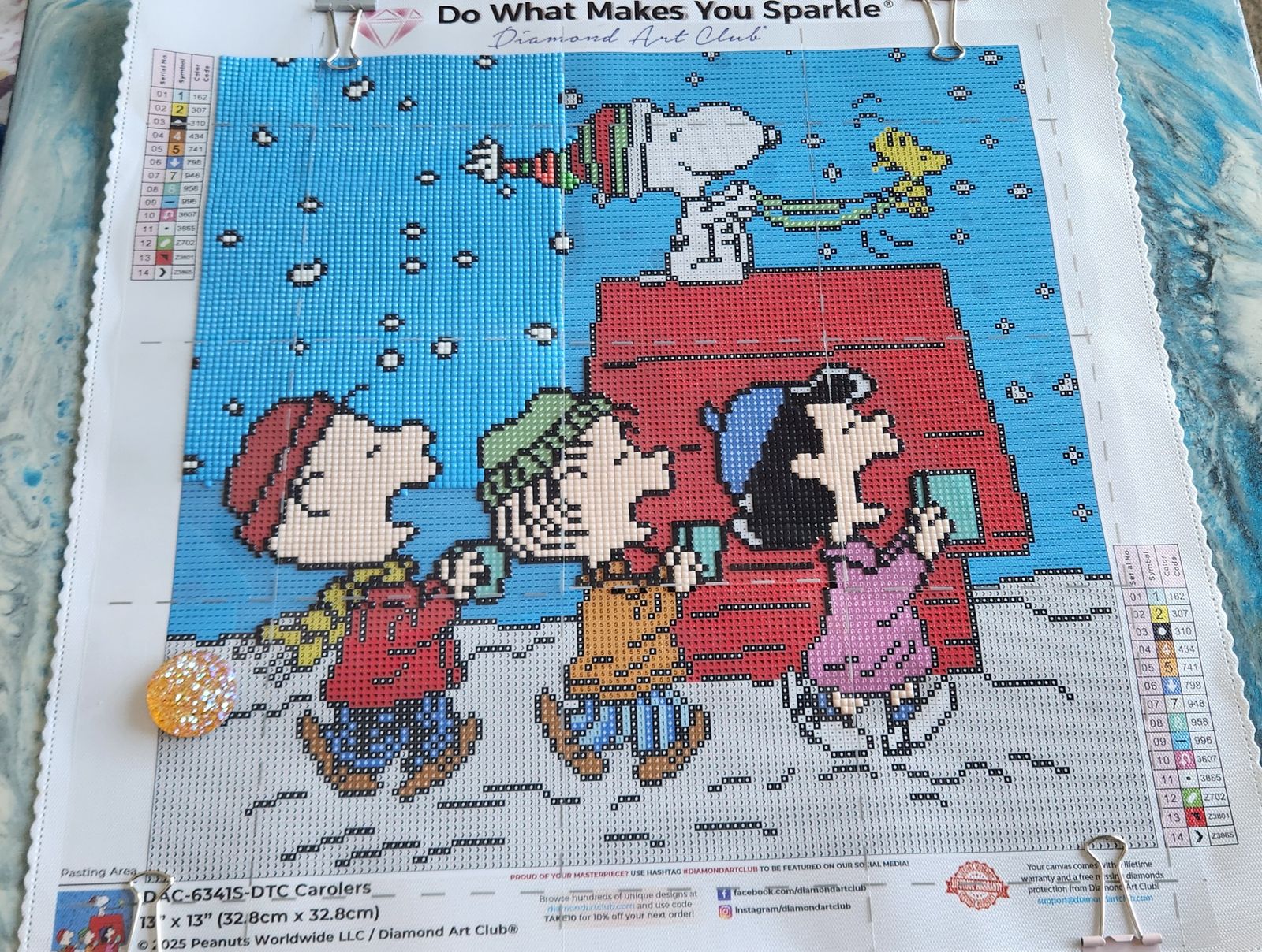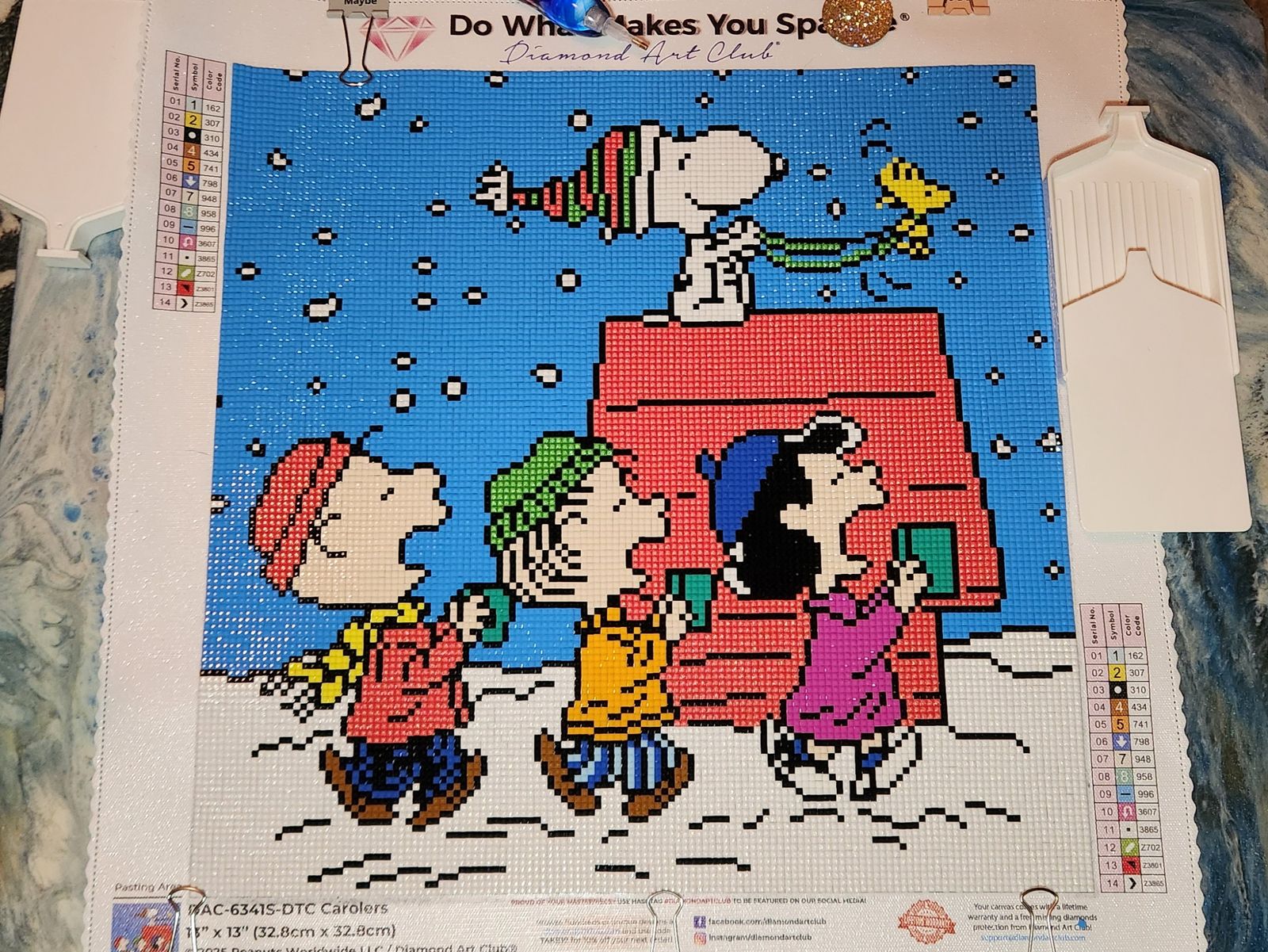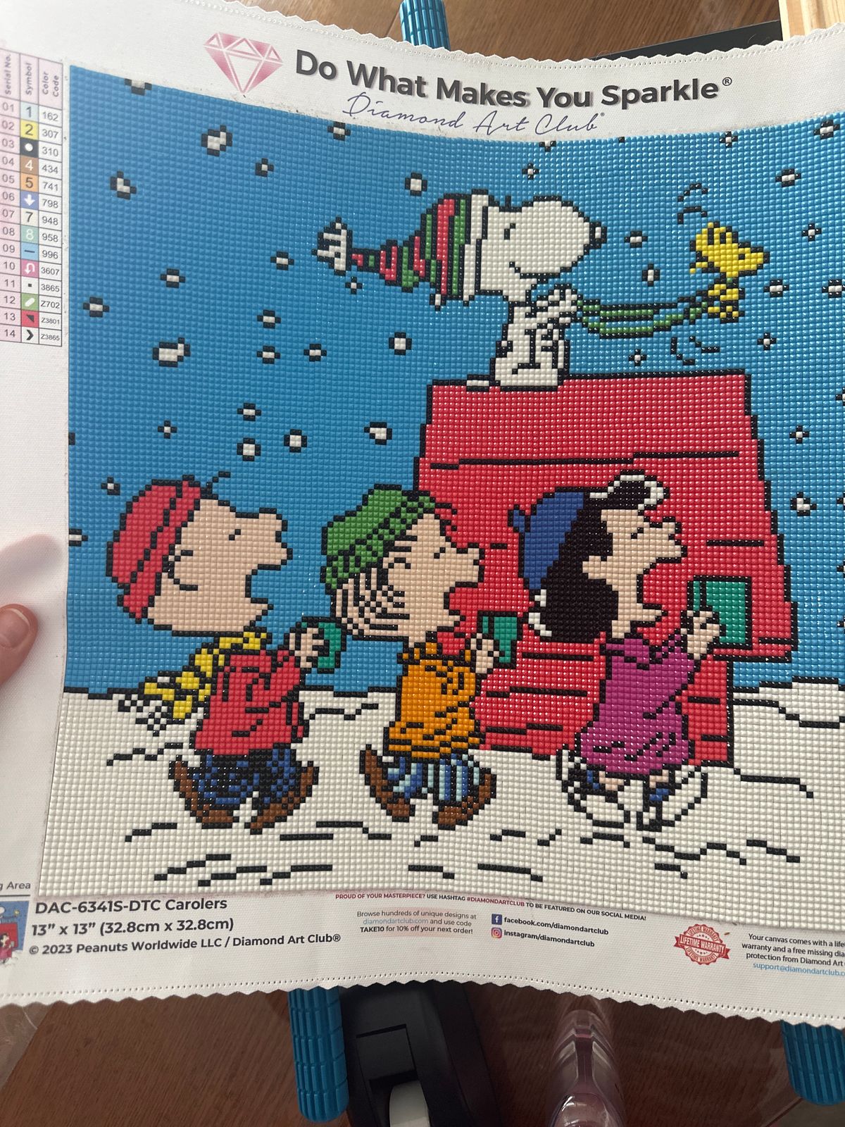 This kit was so much fun to do. I was hesitant to get it because of how much is color blocking, but it went really fast! I finished in 5 days whereas a large, confetti heavy canvas might take me 2 months. Love Snoopy and the Peanuts gang!