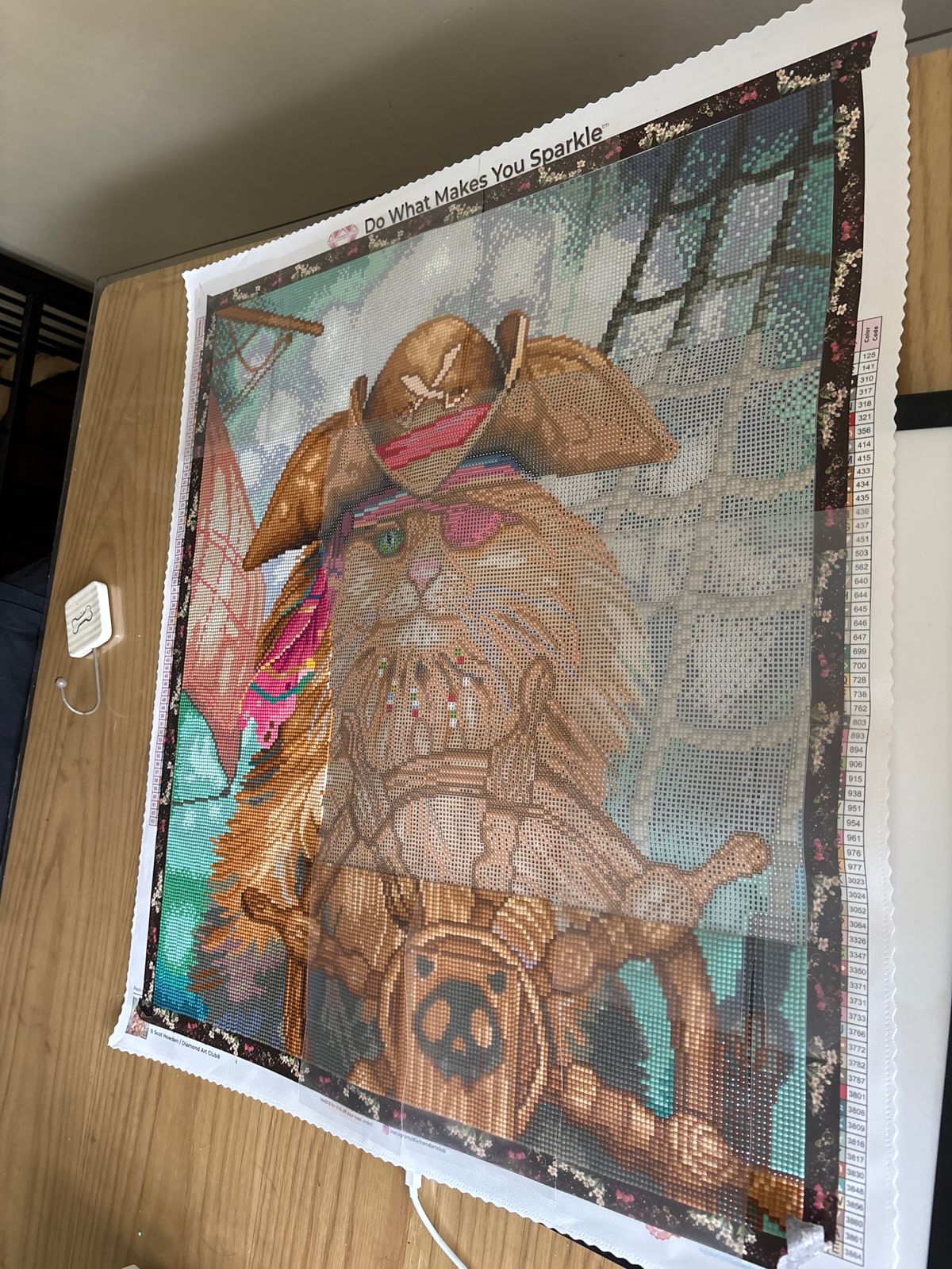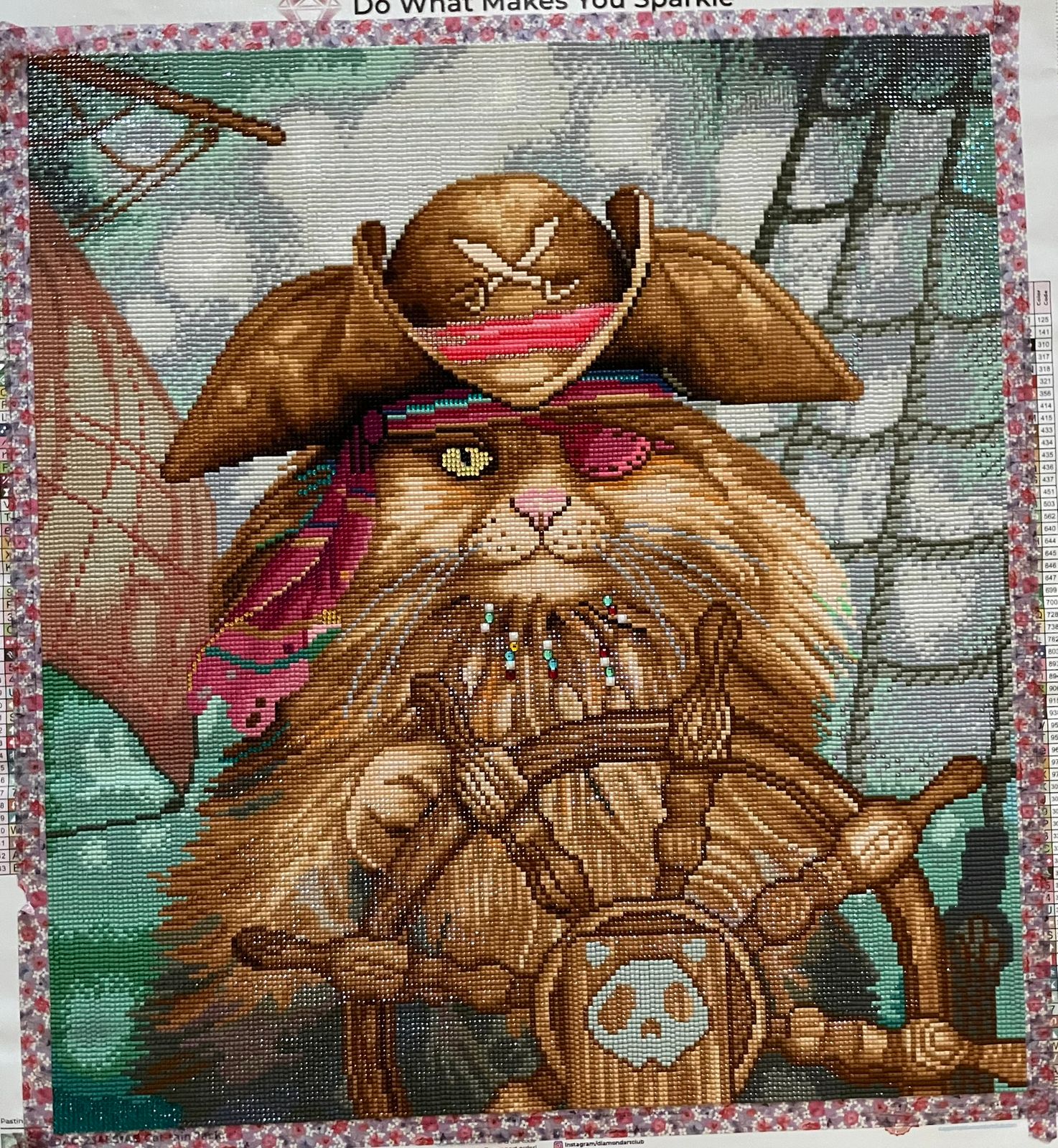 This was my first square kit and the largest I've done yet. It was lovely to work on. The drills were a bit staticky, but there weren't a lot of trash drills or anything like that. I love the artwork. I also have an orange kitty who is missing an eye, and I like to say that Cat-tain Jack would be him if he were a pirate.
