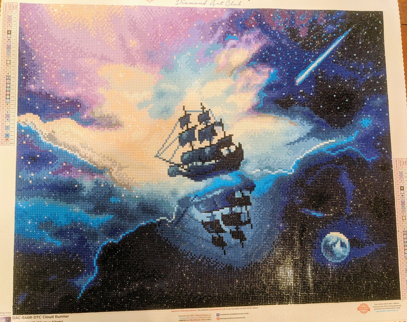 This was my first diamond painting - it was stunning and fun to work on, I'm totally hooked! The final result as the kit lays out for you is very nice, but I personally didn't like the blocky brown-yellows on the left of the painting, or the way the purple blobs in the upper right were rendered. What I did love was all the extra diamonds you get with the kit. I was able to "repaint" areas that didn't suit my taste! I definitely recommend this kit if you are considering it.
