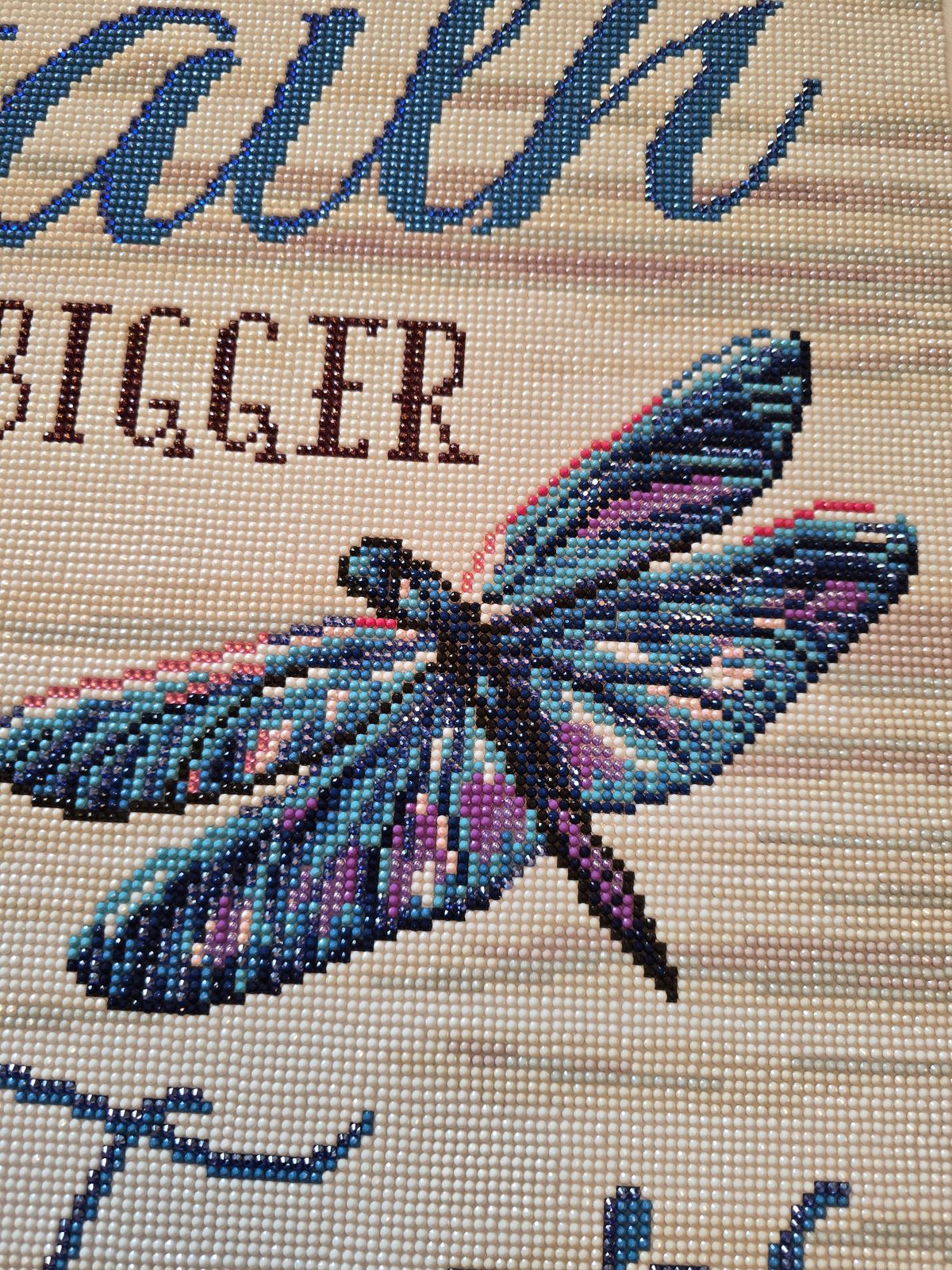 Dragonflies of Faith is absolutely beautiful! The canvas is clear and easy to work with, and the drills are high quality with a gorgeous sparkle that makes the design come to life. The colors are so vibrant, and the detail in the finished piece is breathtaking.