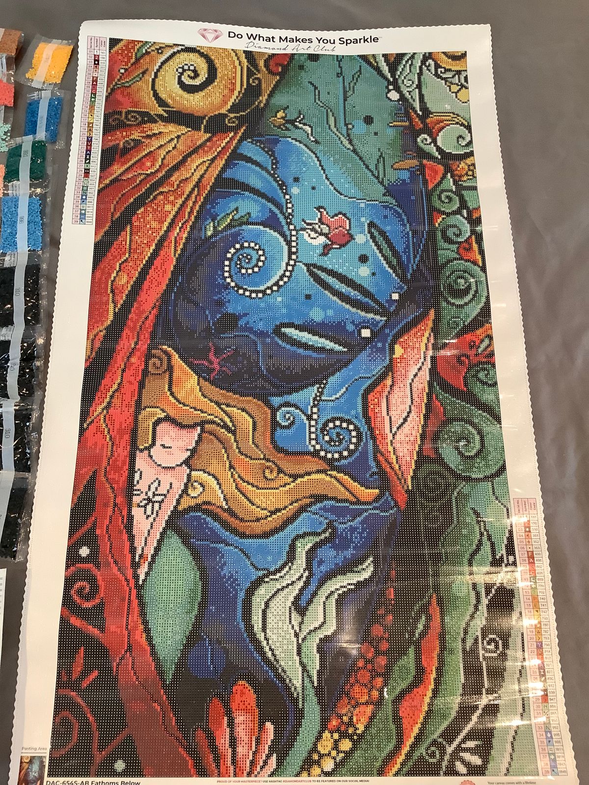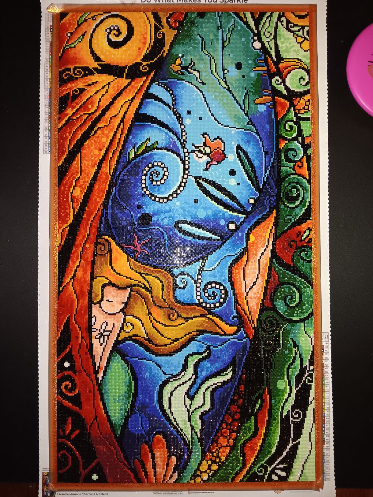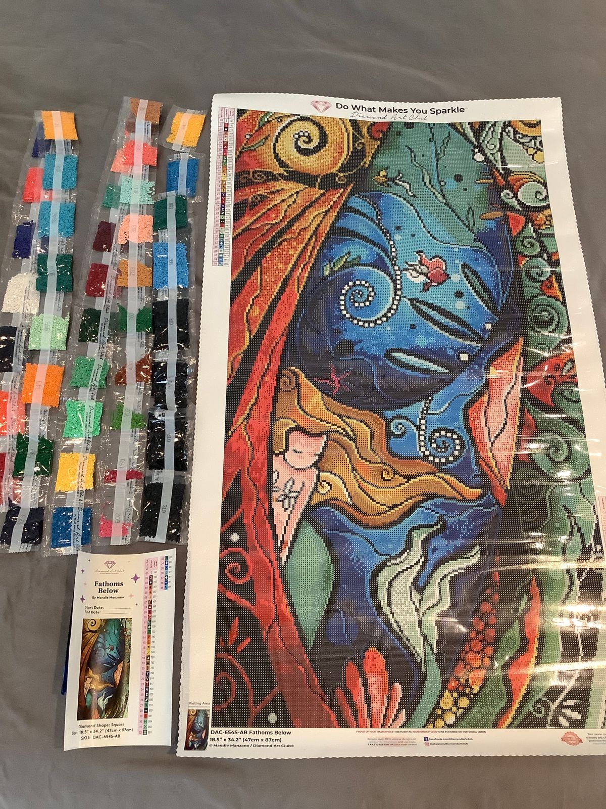 Amazing! This painting makes me feel like I'm in the water swimming around her. Very fun to do with beautiful colors and cute little fish. Fantastic artwork by Mandie Manzano. As always , DAC put together an outstanding kit.