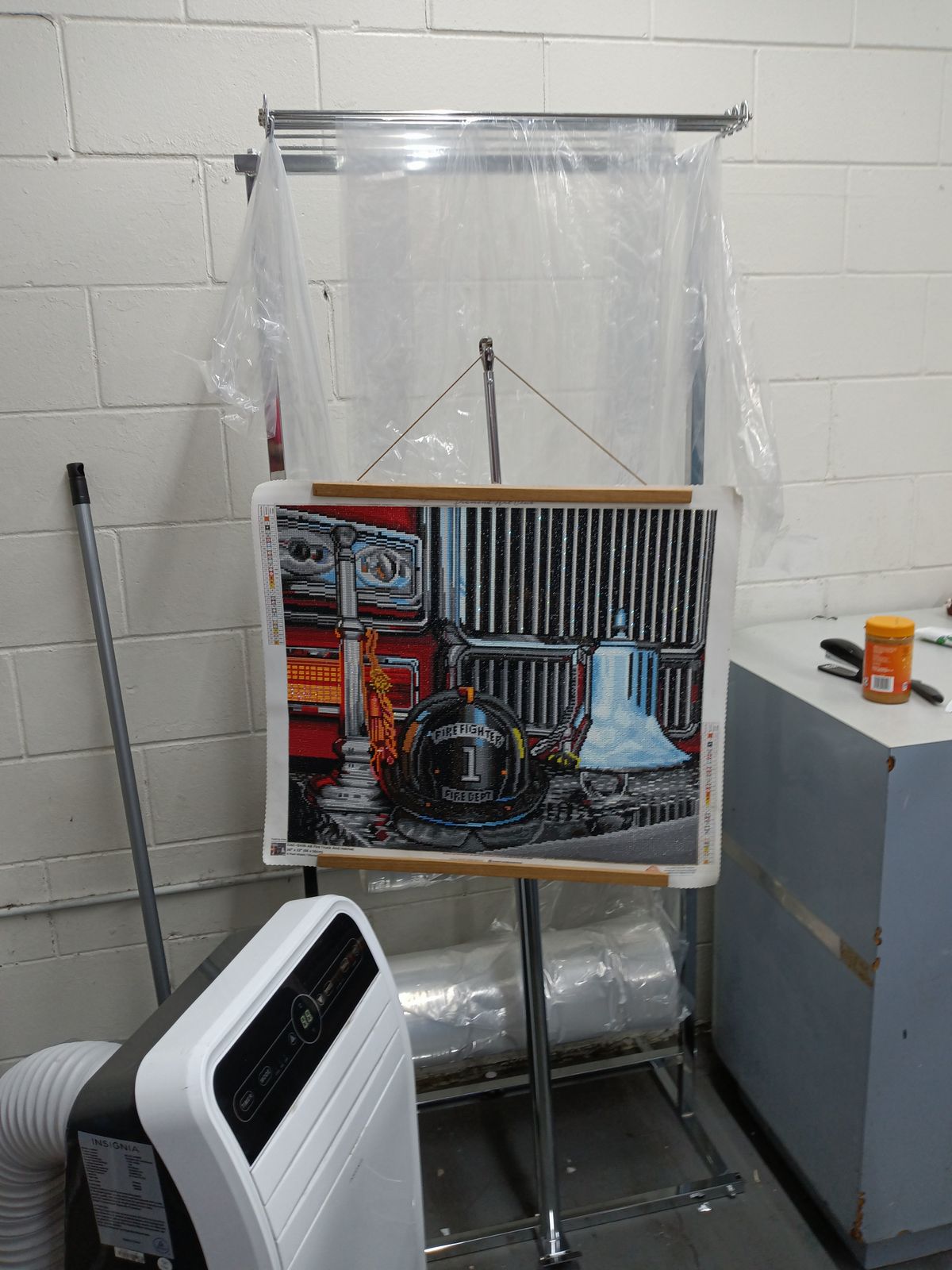 This is one of my favorites that I have done. My husband is a fire fighter and this is hung up with all his fire fighter stuff.
