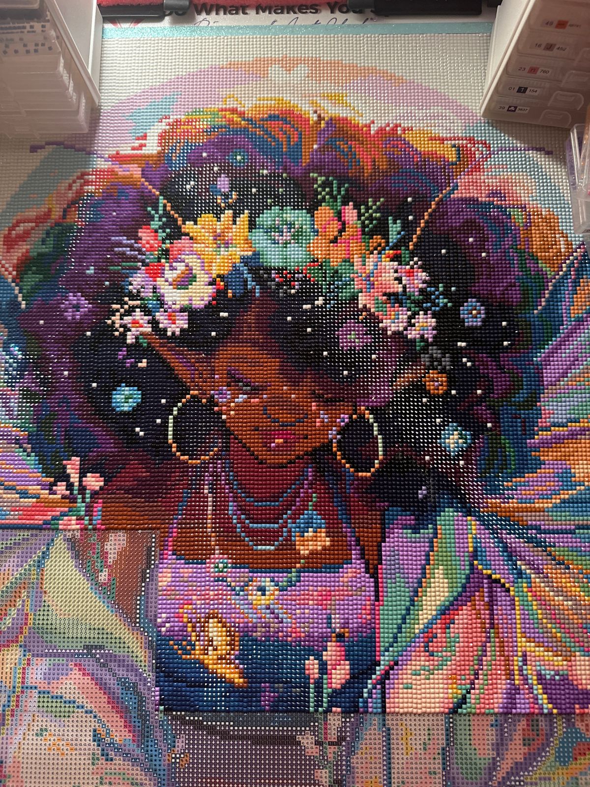 This kit was a dream to work on except the white color blocking background. It almost took me out because I don’t care for color blocking. Especially not with light colors. However the grid field was so good, that there was no gapping.