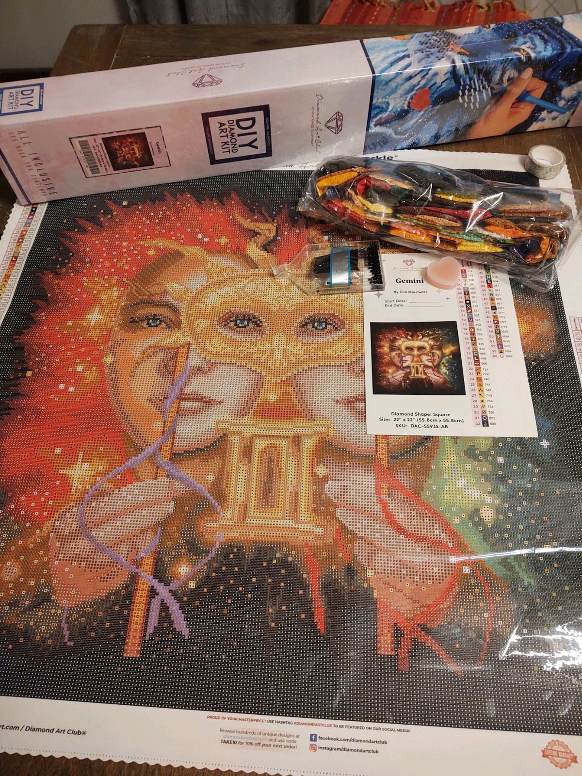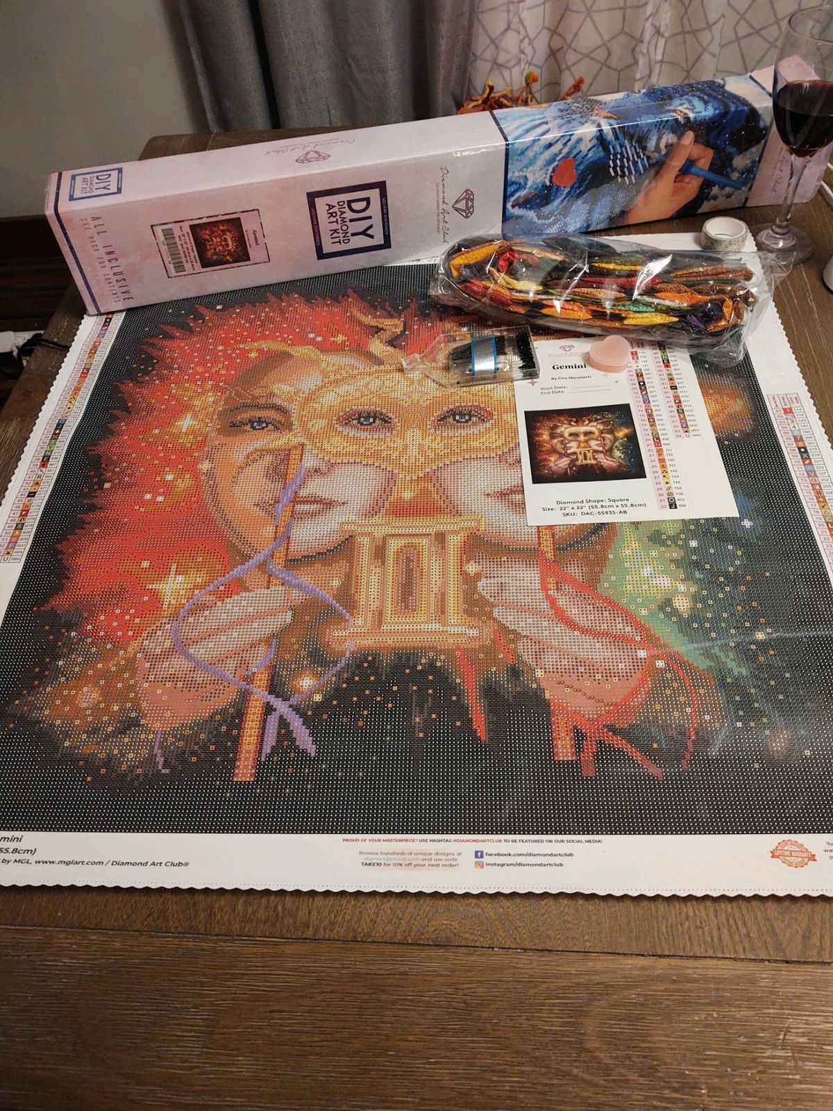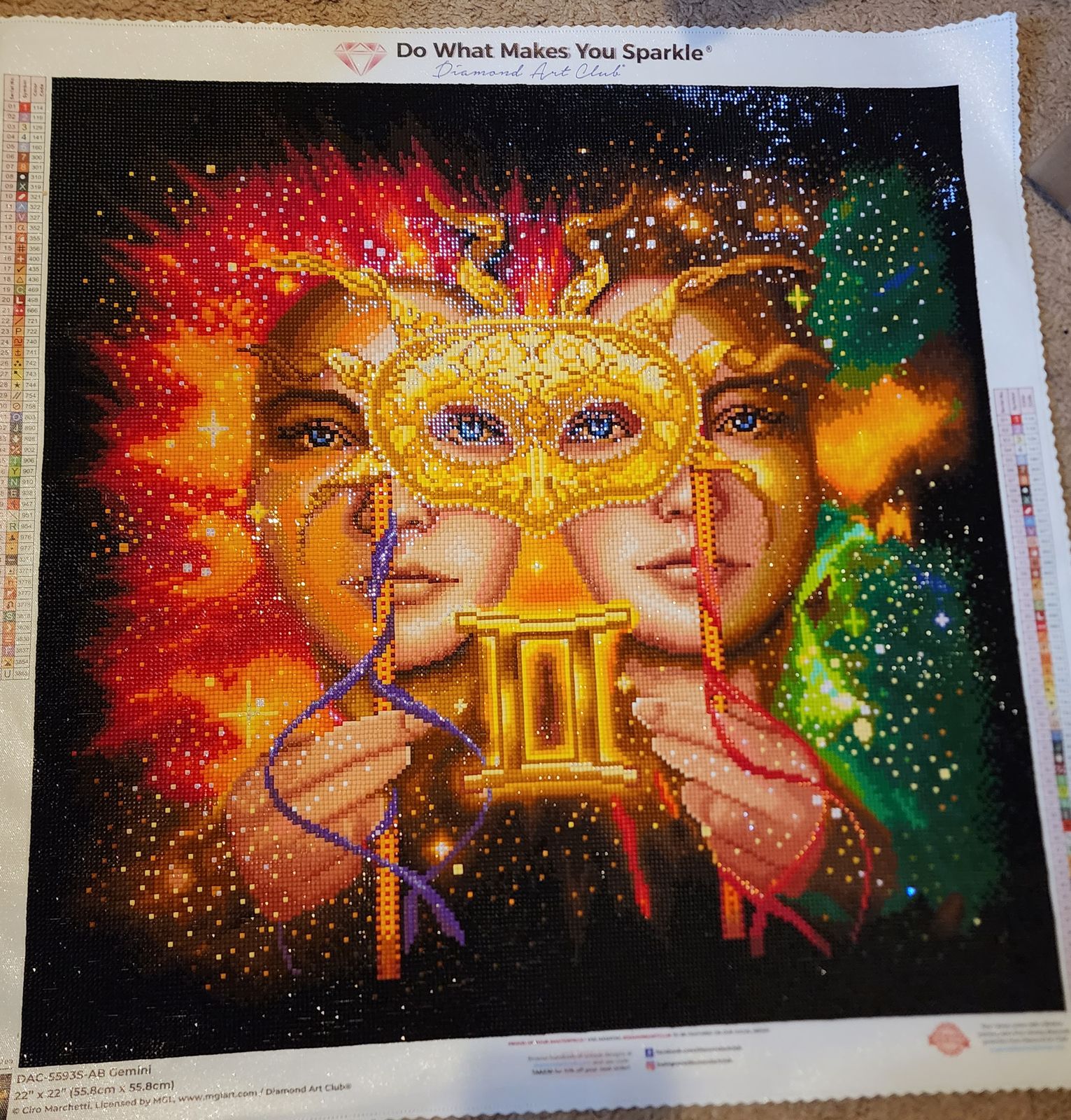 This is the first of the Zodiac Collection I started working on. The colors of the dotz are exquisite, the canvas is easy to read. and totally love what the ab dotz add to the picture. Very elegant picture. I pour me a glass of wine and relax while working on this
