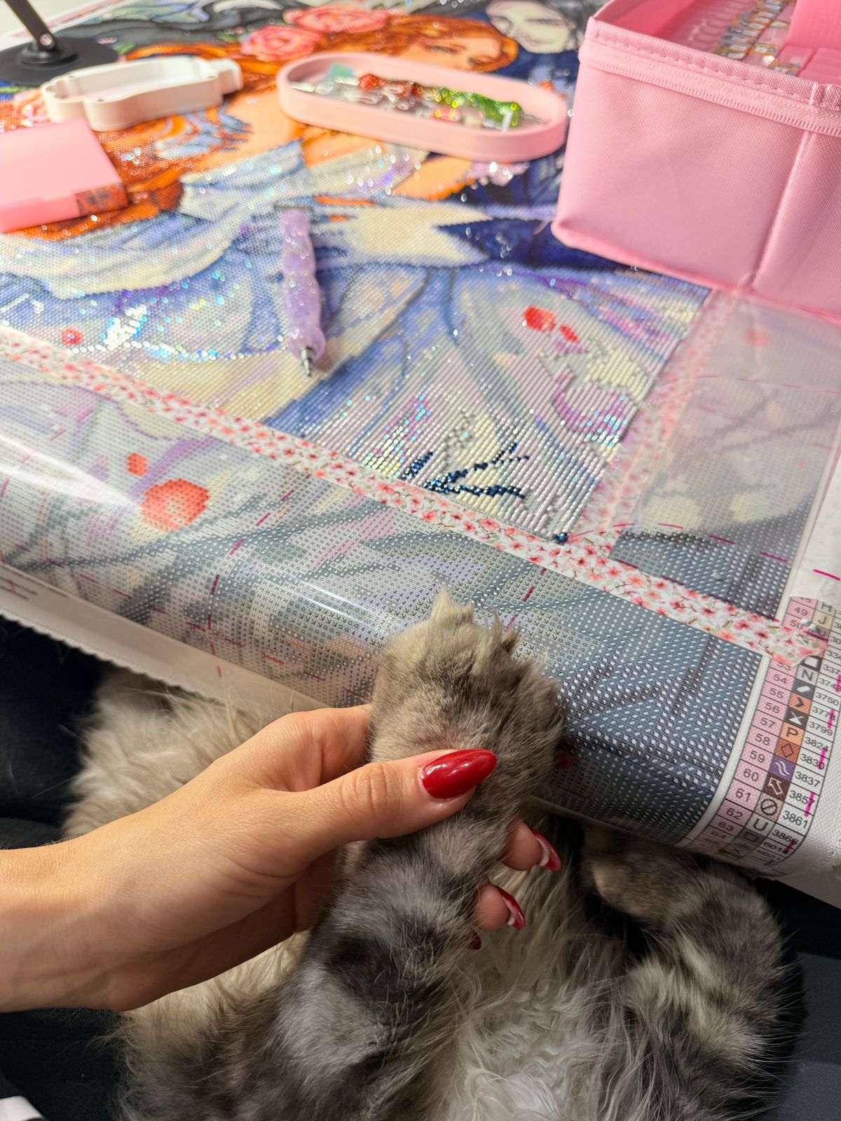 Das Bild ist so ausdrucksstark und romantisch, ich musste es mir kaufen und painten. Die Qualität der Steine und der Leinwand sind wie gewohnt super, die Folie hat die pinken Streifen, ist aber alles ok. Die Steine liegen toll und es funkelt sehr schön. Eine gute Mischung aus sehr viel Konfetti und Lineblocking.