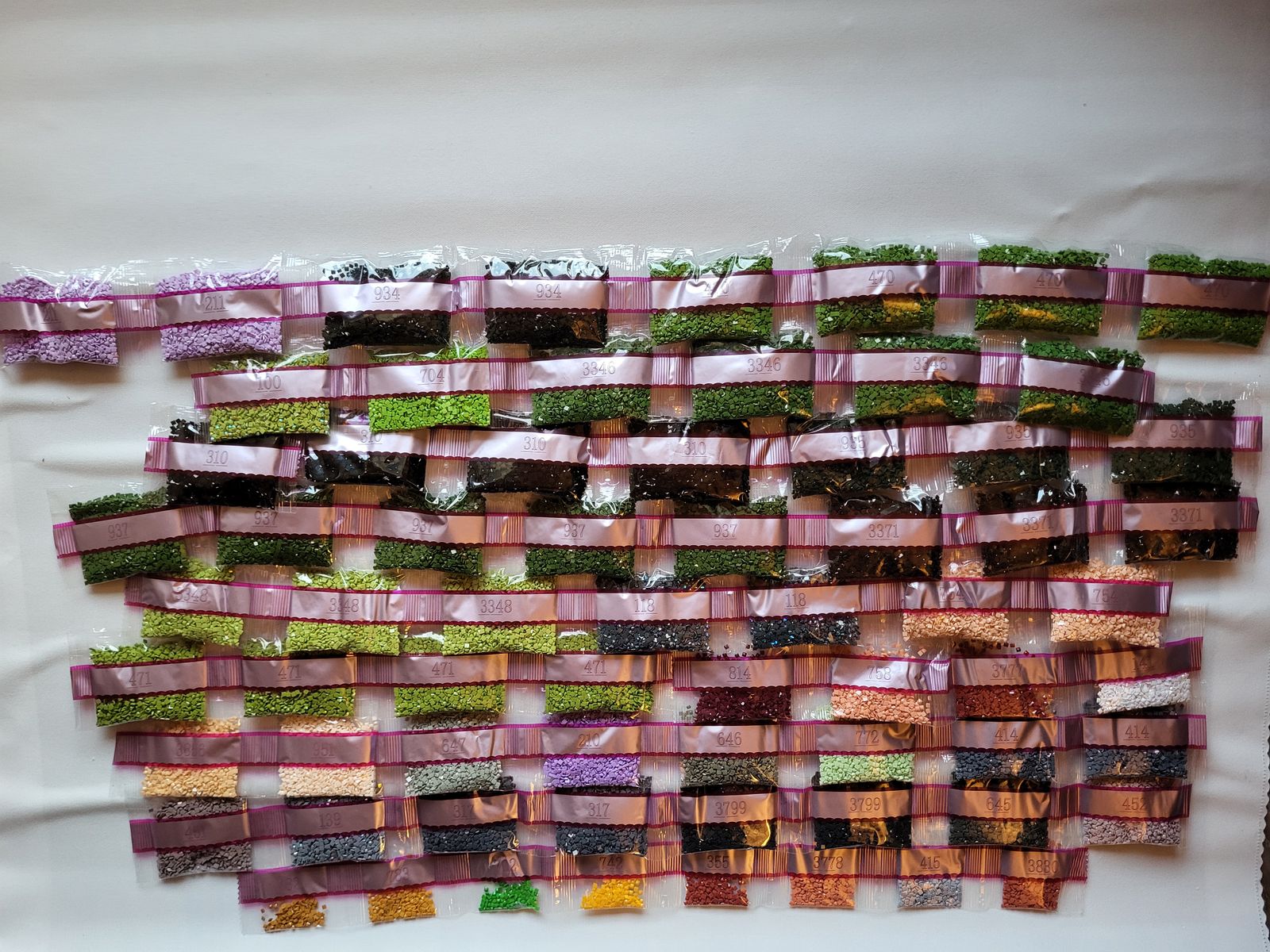Have not had a chance go start on this yet so limited review for now. Extremely pleased with this diamond panting kit. Drill colors are vibrant and sparkly, canvas is soft and pattern is easy to read. I bought the 27.6 x38.6 and it is HUGE! Will take several months to finish but I am really excited about working on this one. Love Diamond Art Club diamond kits and I also have to mention the treasure quest cards. What a fun idea. Will recommend these kits to everyone I know who is as addicted to this hobby as I am. Thank you Diamond art club.