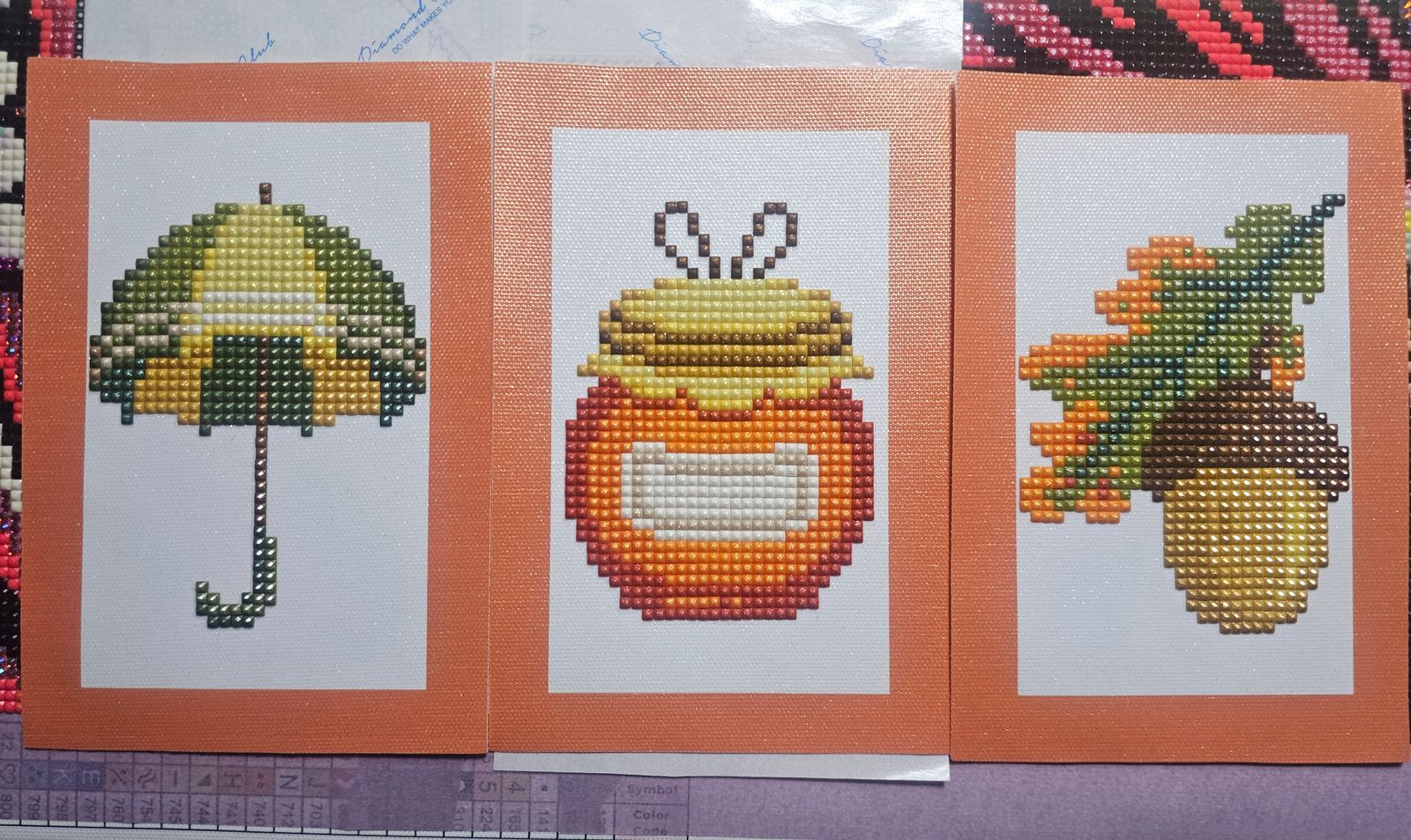 Absolutely loved working on this set of minis. The different hues of green used are amazing, the olive green being my favorite. The jar of jam is just too adorable. The drills were of DAC standards, the canvases were cut uniformly, and the small tray it comes with fits perfectly in my hands. I highly recommend them to everyone. Happy diamond painting everyone! :)